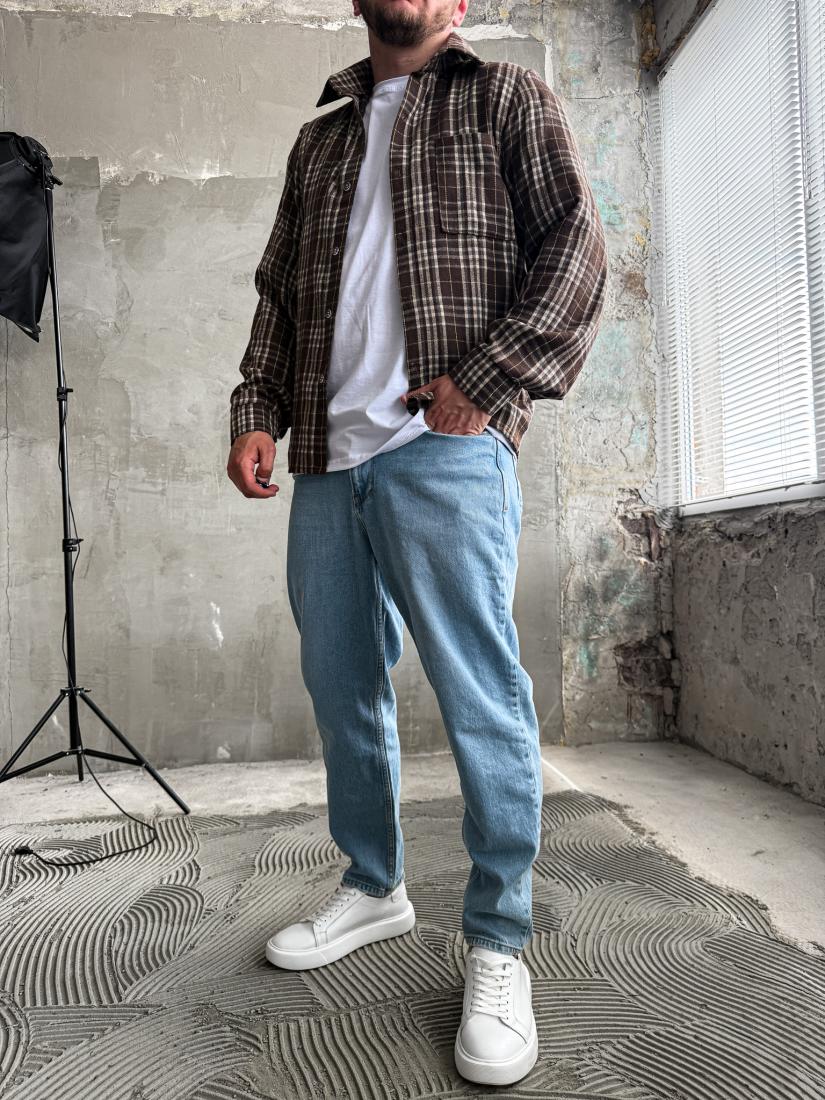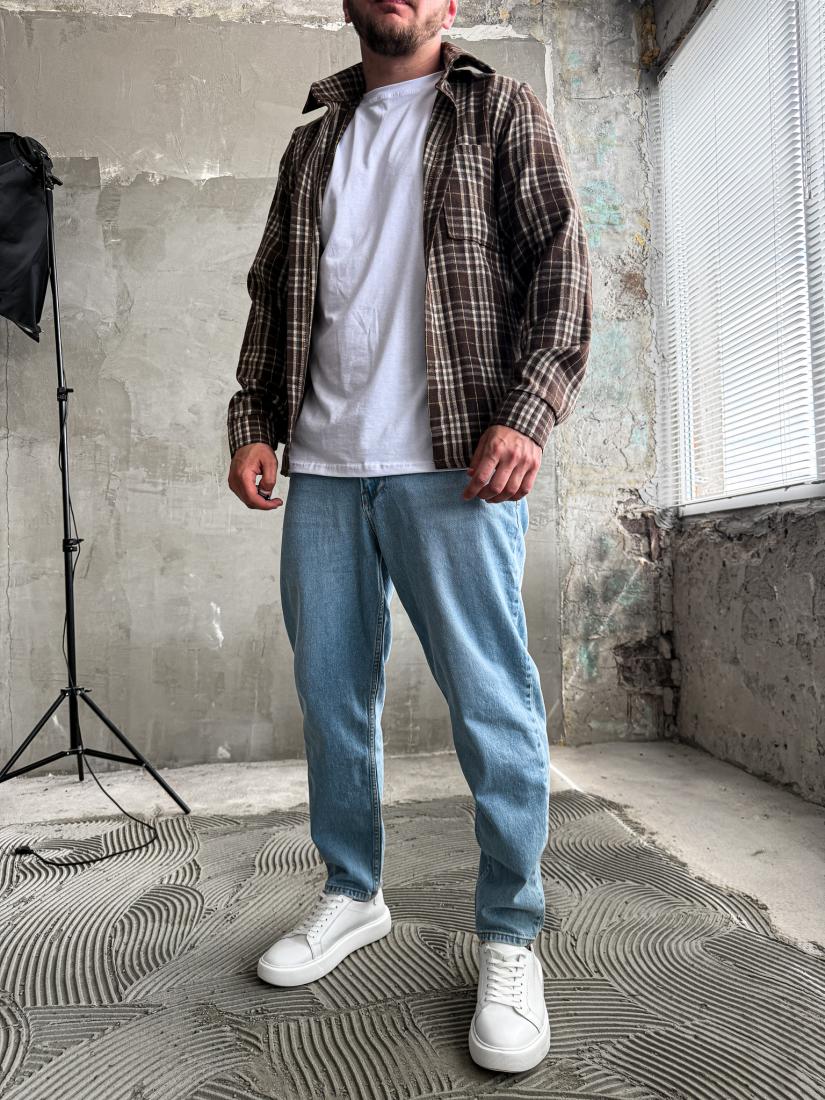 Мужская Клетчатая Коричневая Рубашка Свободного Кроя – Байковая Теплая