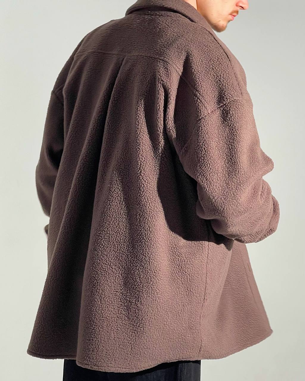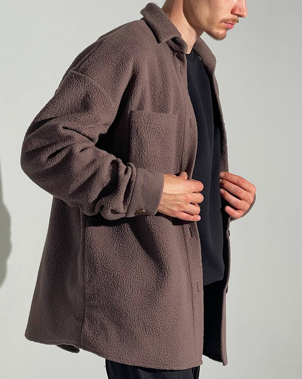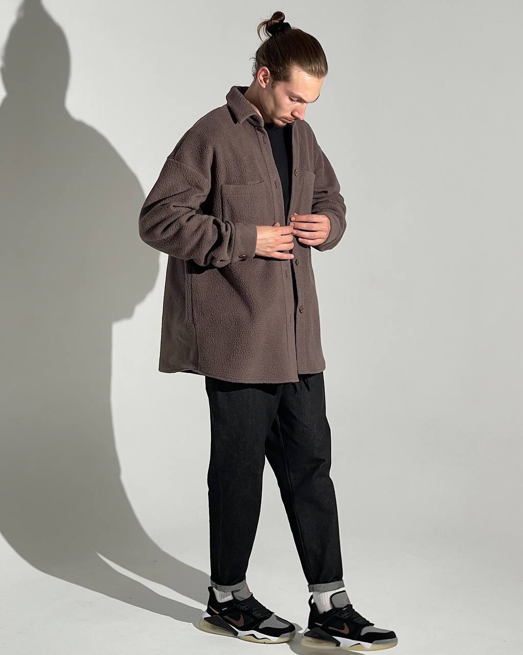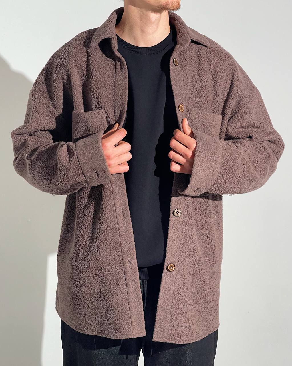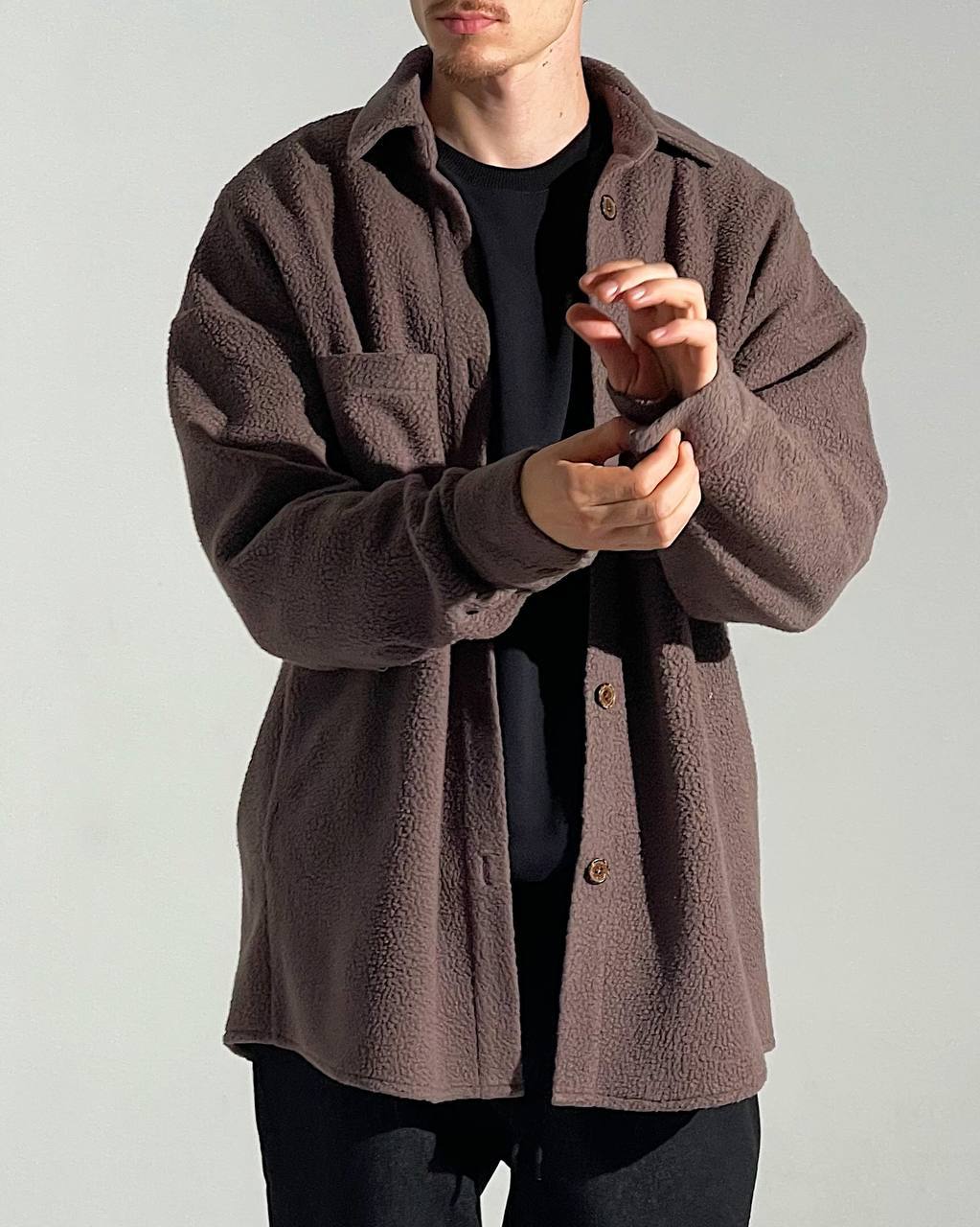 Мужская Коричневая Рубашка Оверсайз Плюшевая Барашек