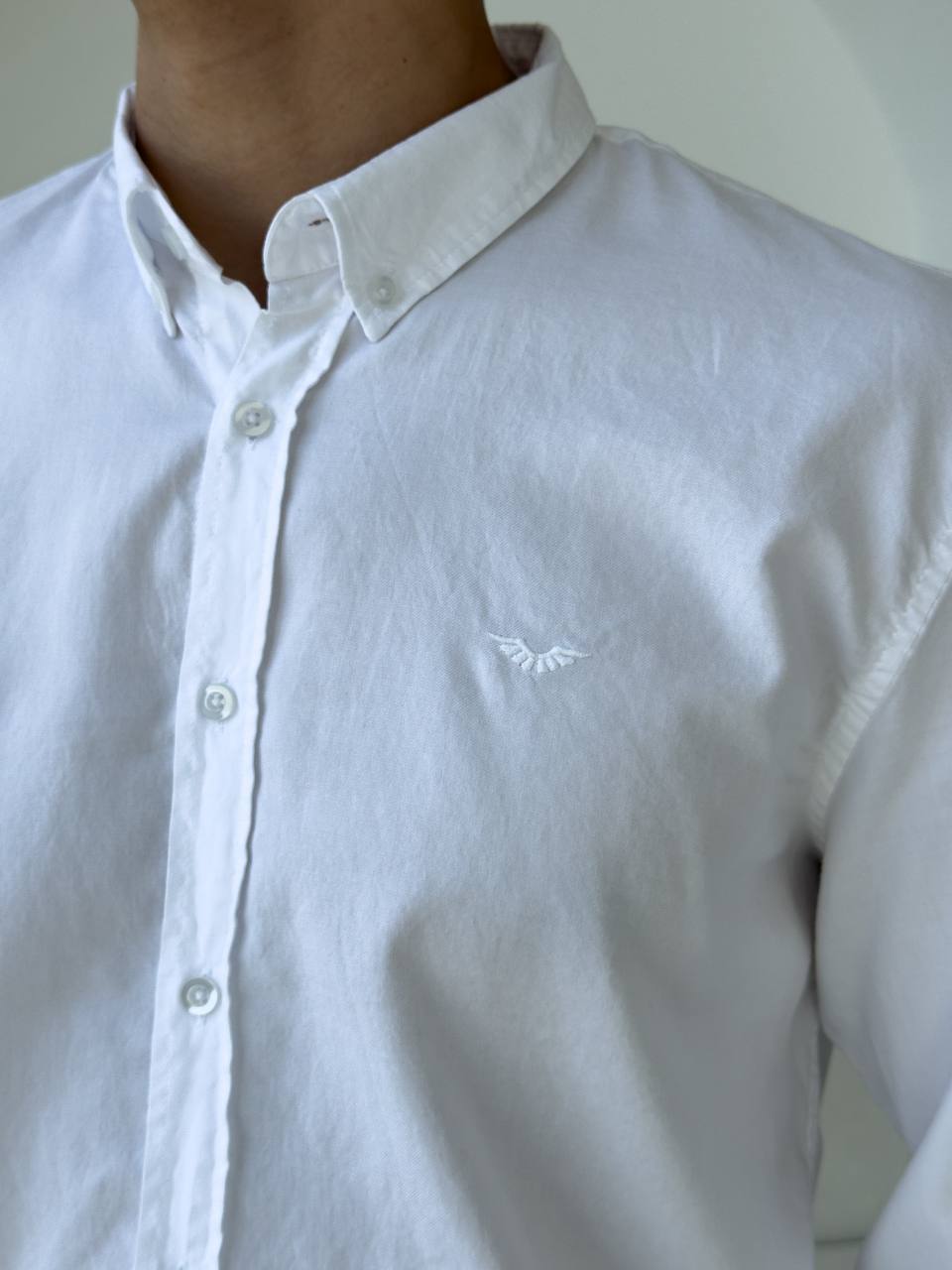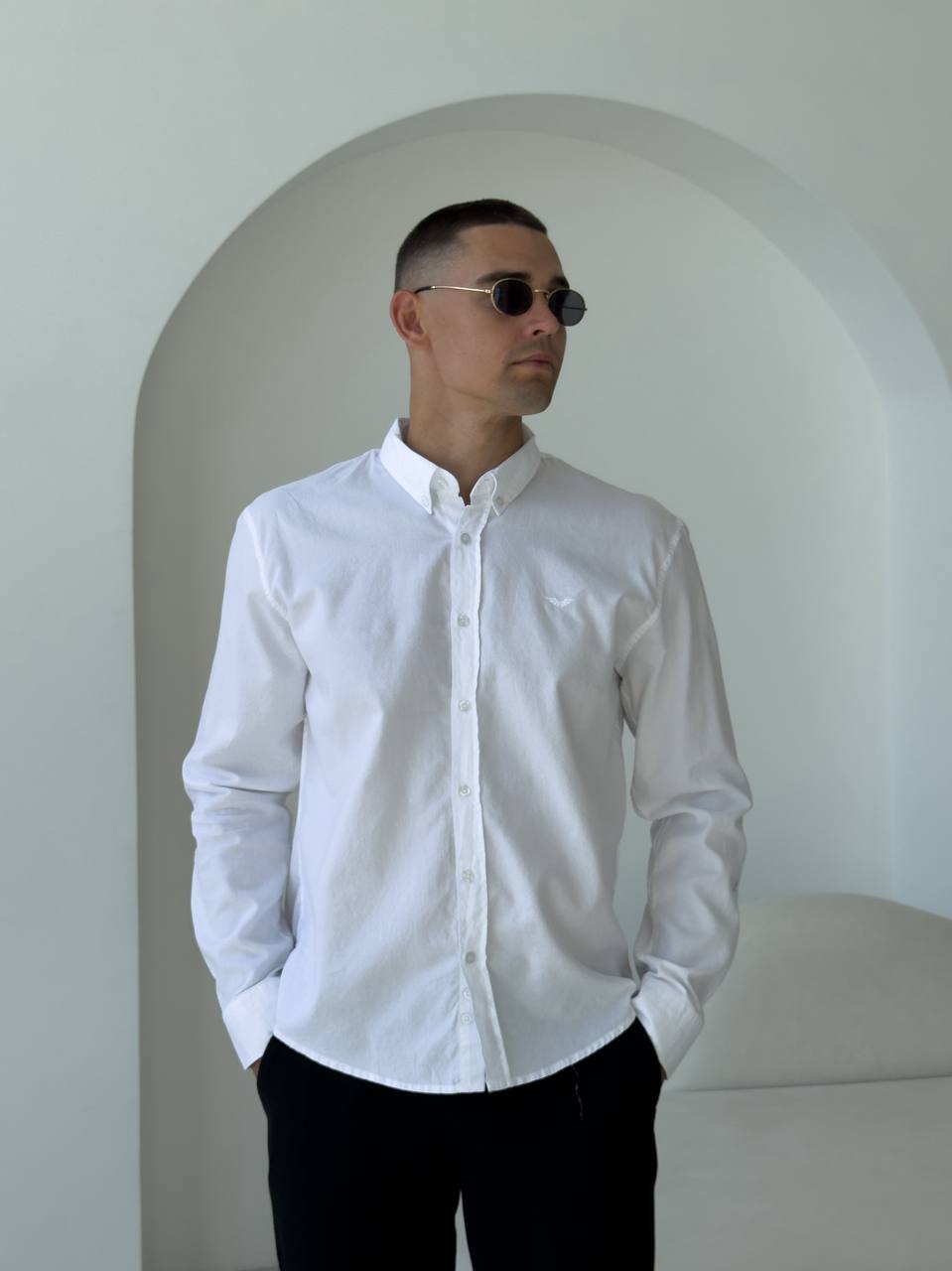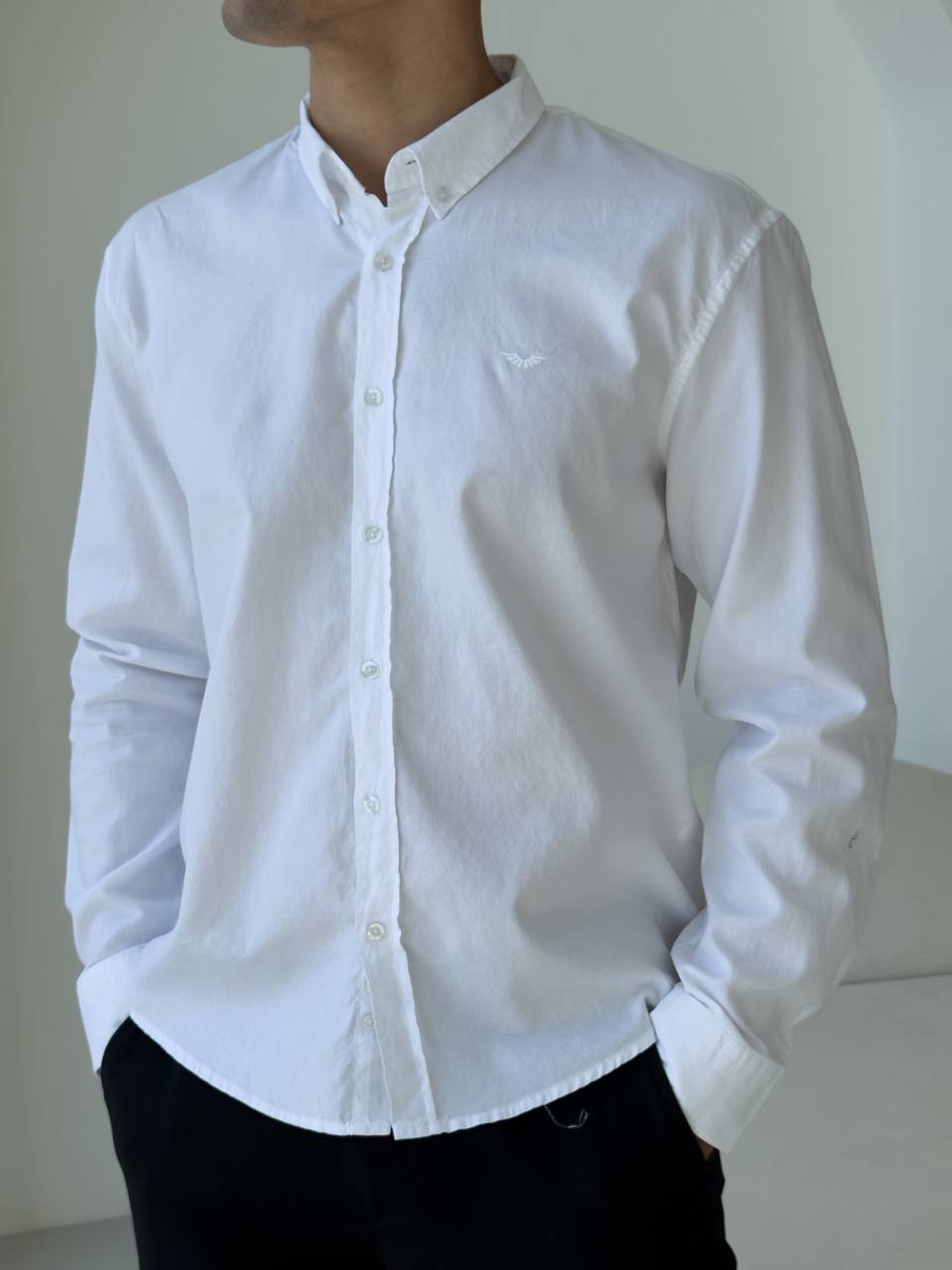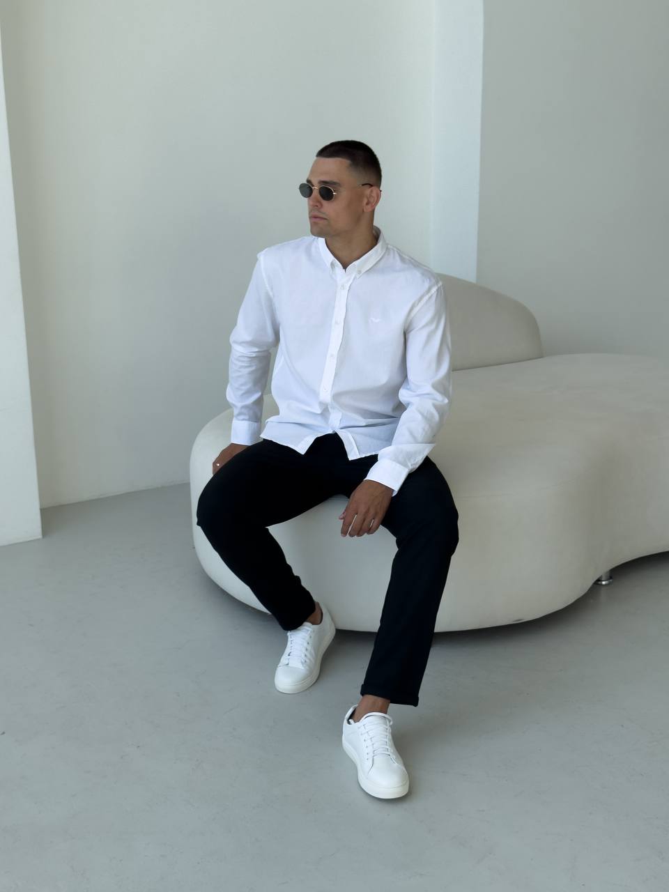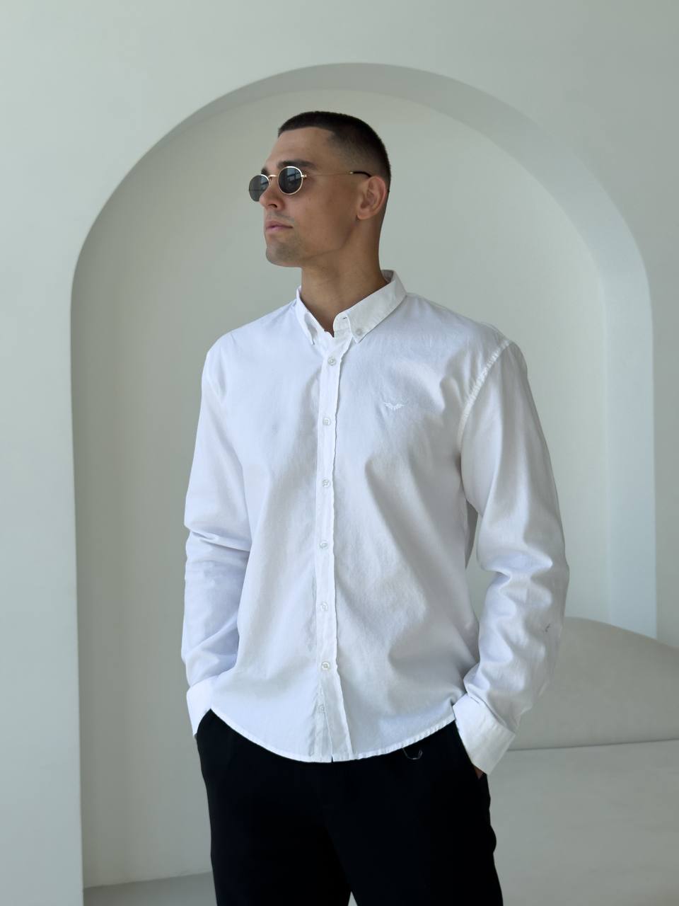 Мужская Льняная Белая Рубашка – Базовая Свободного Кроя