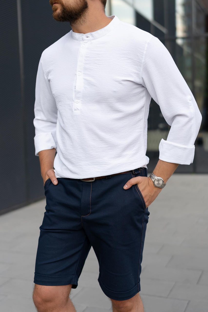 Мужская Приталенная Белая Рубашка – Базовая с Воротником Стойкой