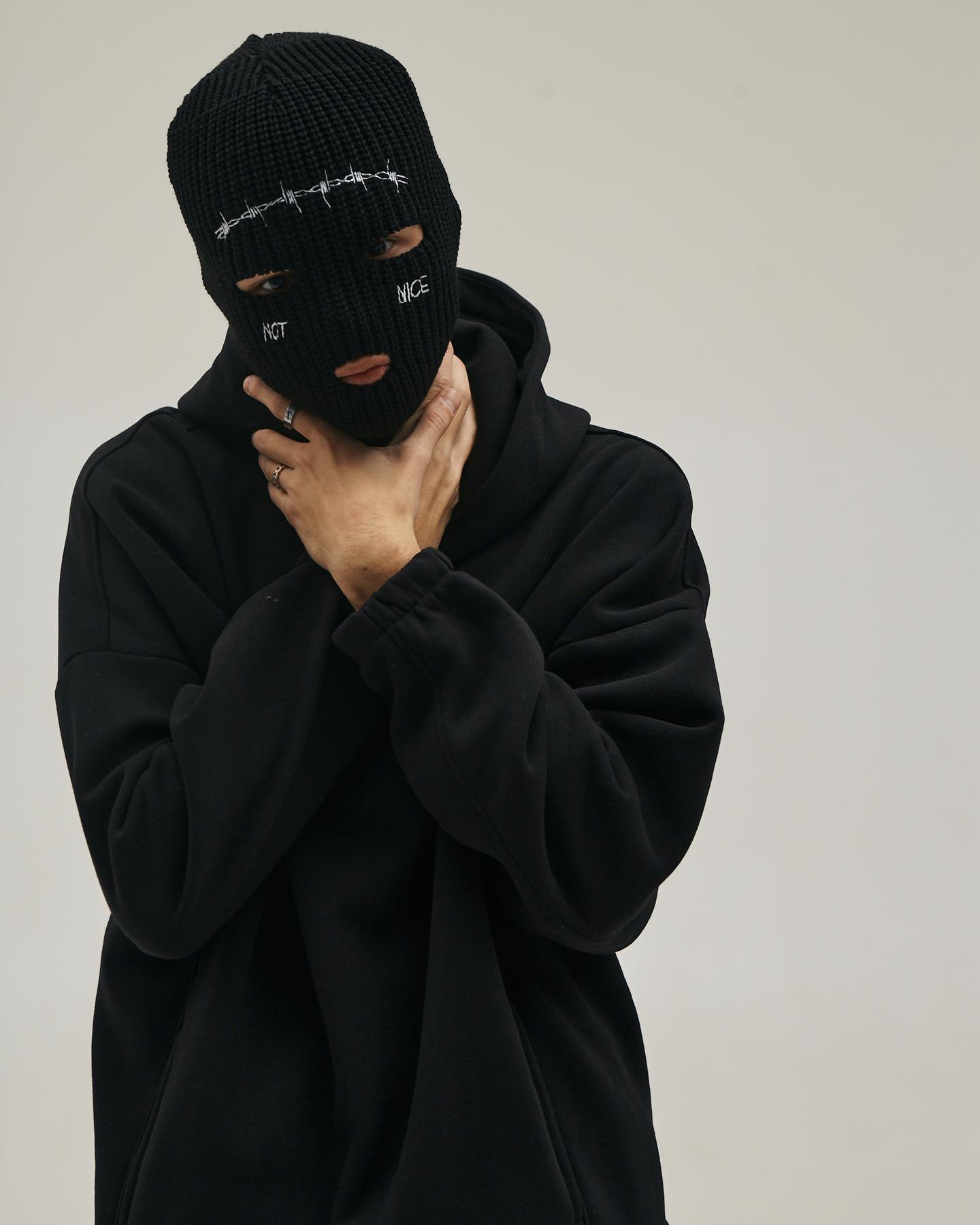 Мужская Теплая Черная Балаклава – Вязаная с Вышитым Рисунком Колючей Проволокой