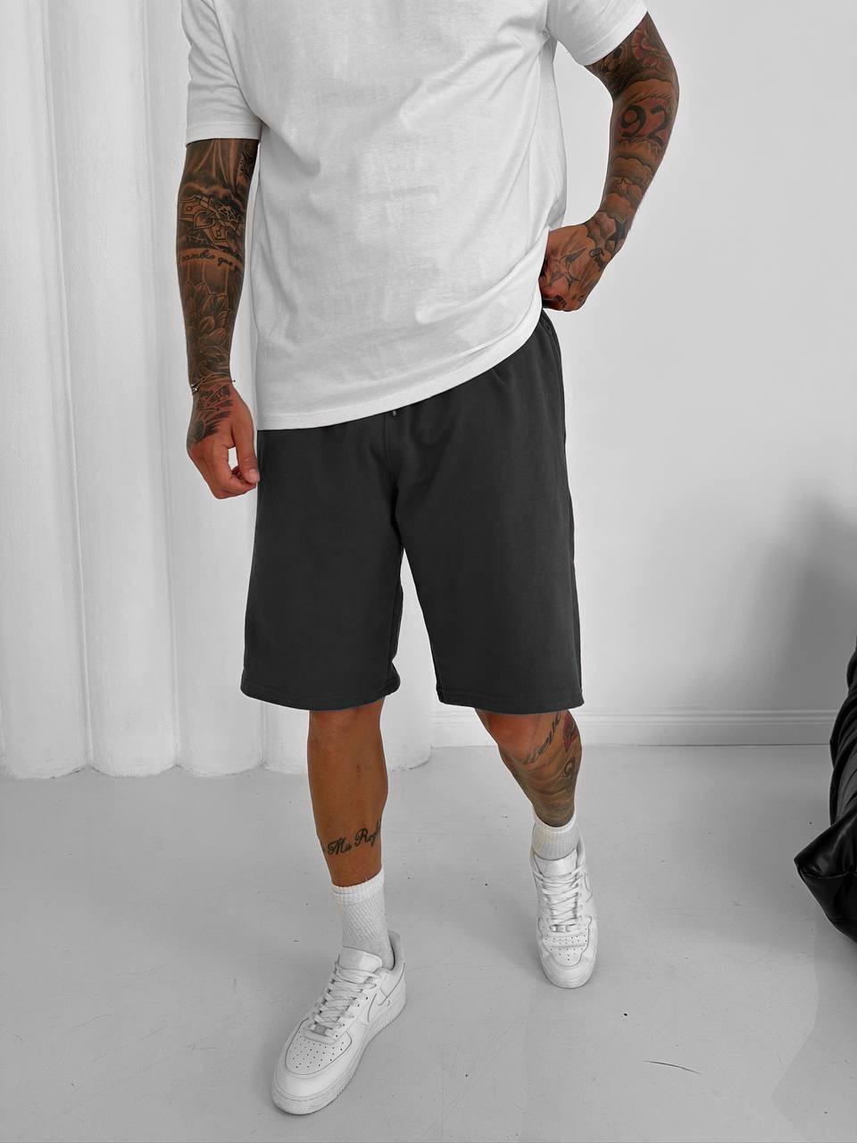 Мужские Базовые Хлопковые Графитовые Шорты Свободного Кроя на Резинке