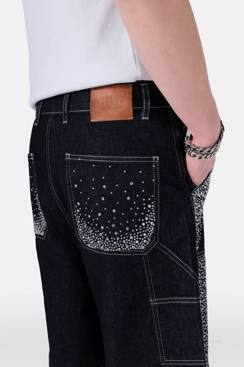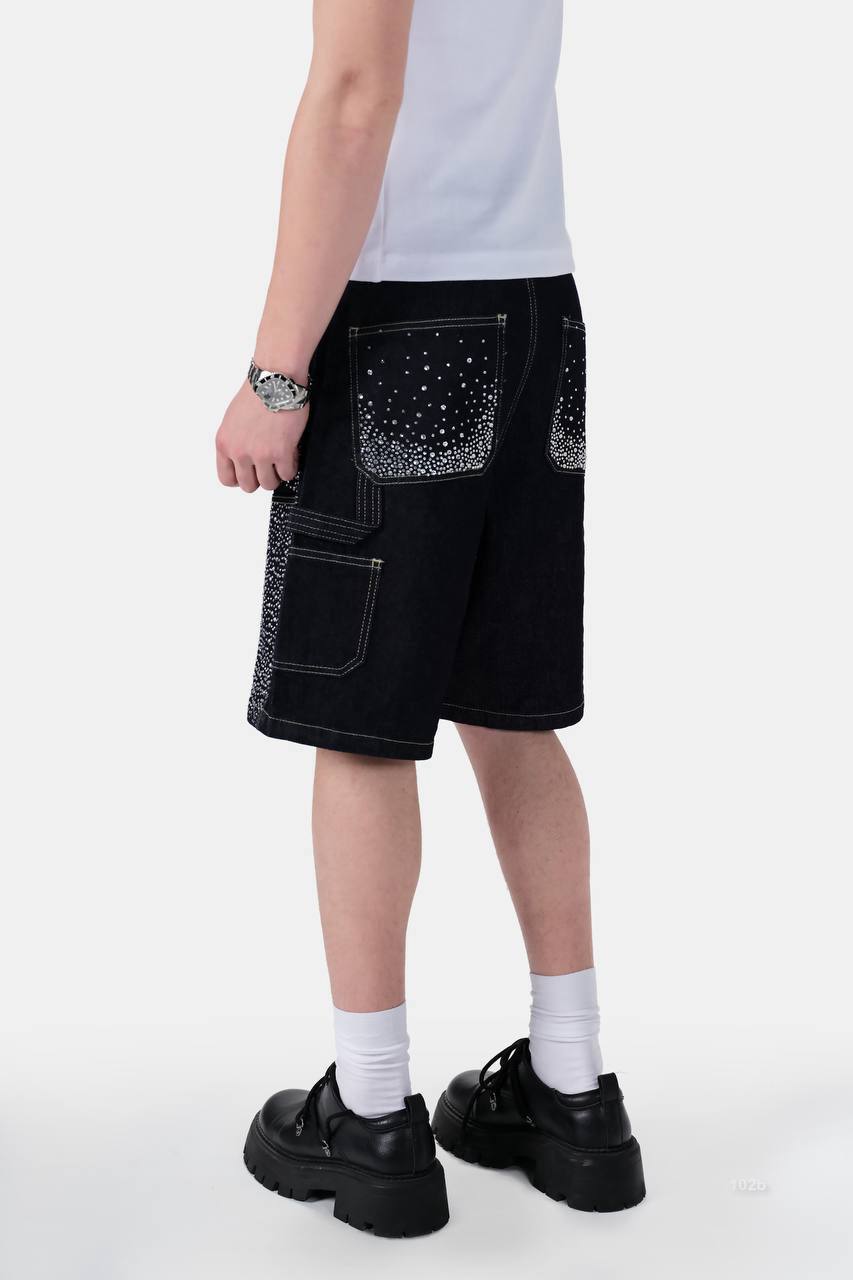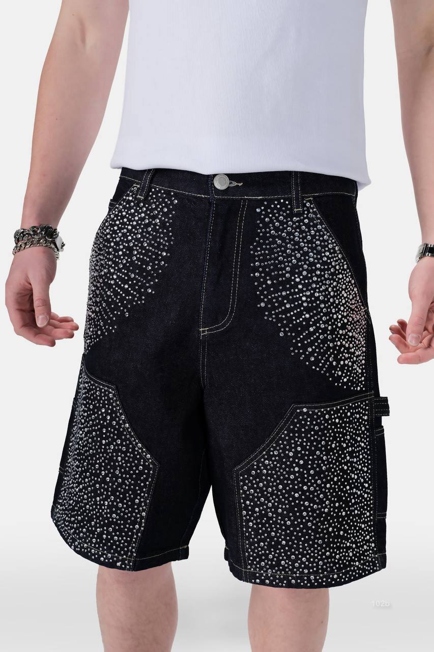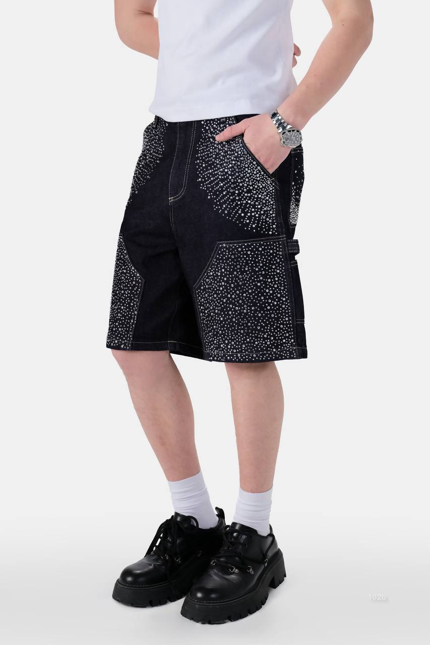 Мужские Черные Джинсовые Шорты – Широкие в Камнях Сразах