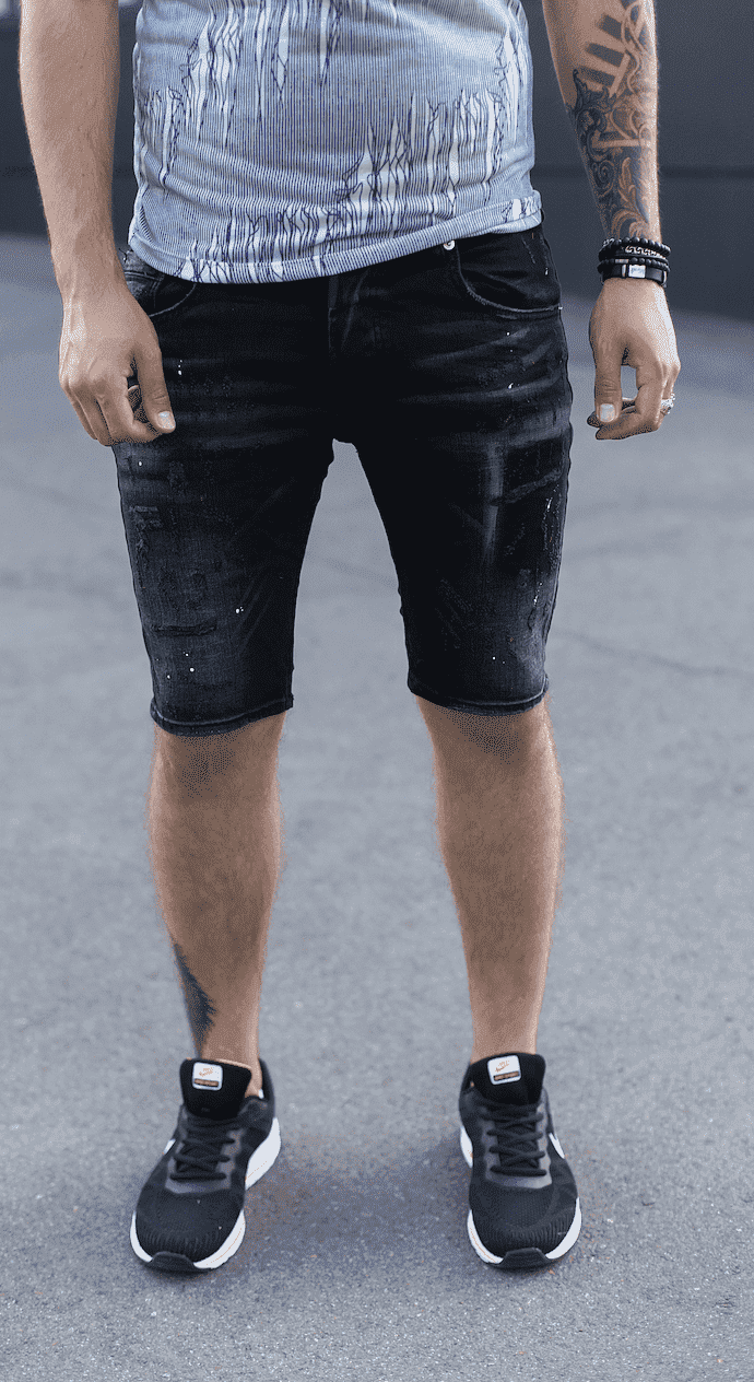 Мужские Джинсовые Черные Шорты – с Потертостями в Брызгах Краски