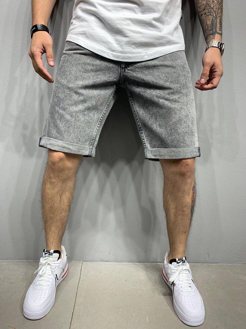 Мужские Джинсовые Шорты Серые – Свободного Кроя Летние с Подворотами