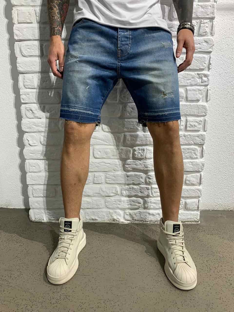 Мужские Джинсовые Шорты Синего Цвета – Рванные с Необработанными Краями