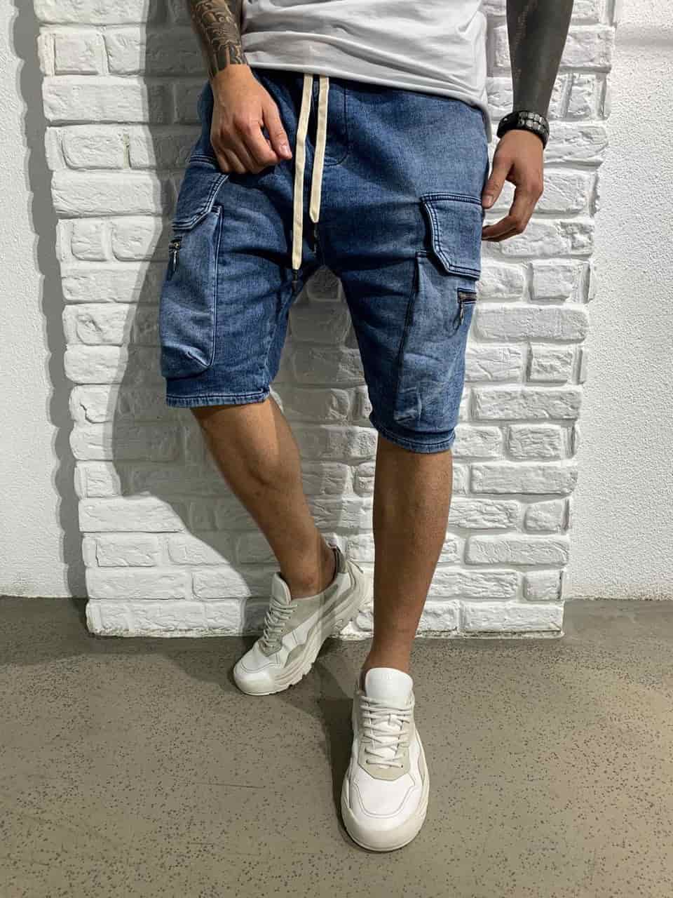 Мужские Джинсовые Шорты Синие – Свободные Летние Коттон с Карманами