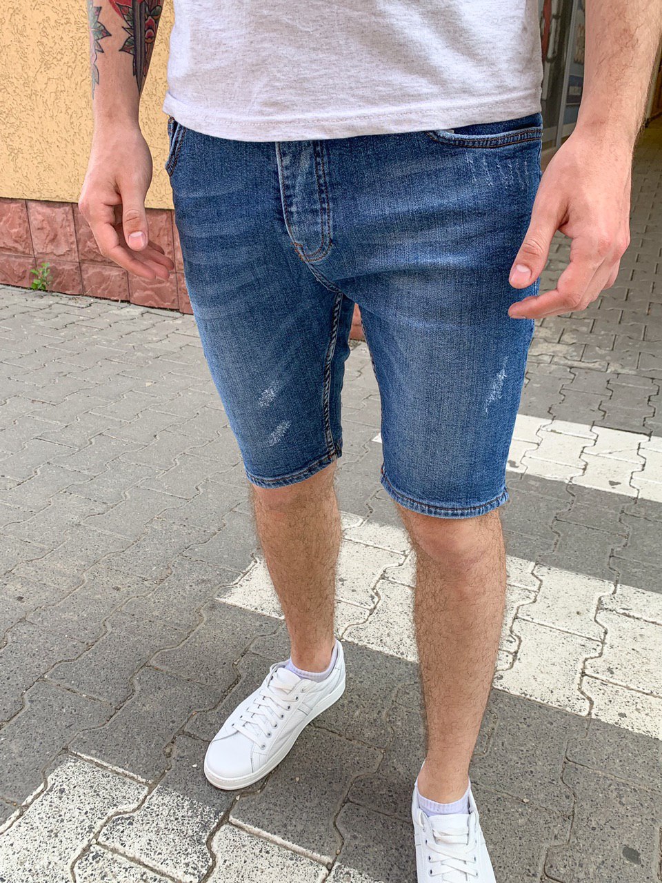 Мужские Джинсовые Шорты Синие – Зауженные Летние Хлопок с Потертостями