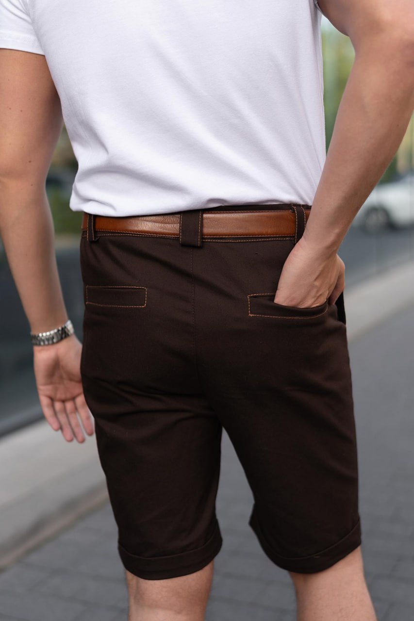 Мужские Классические Коричневые Шорты с Контрастными Швами