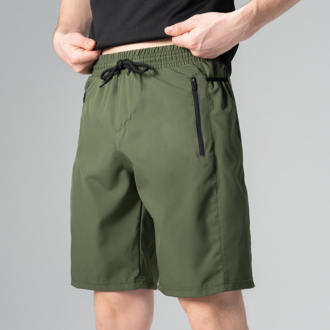 Мужские Легкие Летние Шорты Хаки Свободного Кроя – Базовые на Резинке со Шнурком