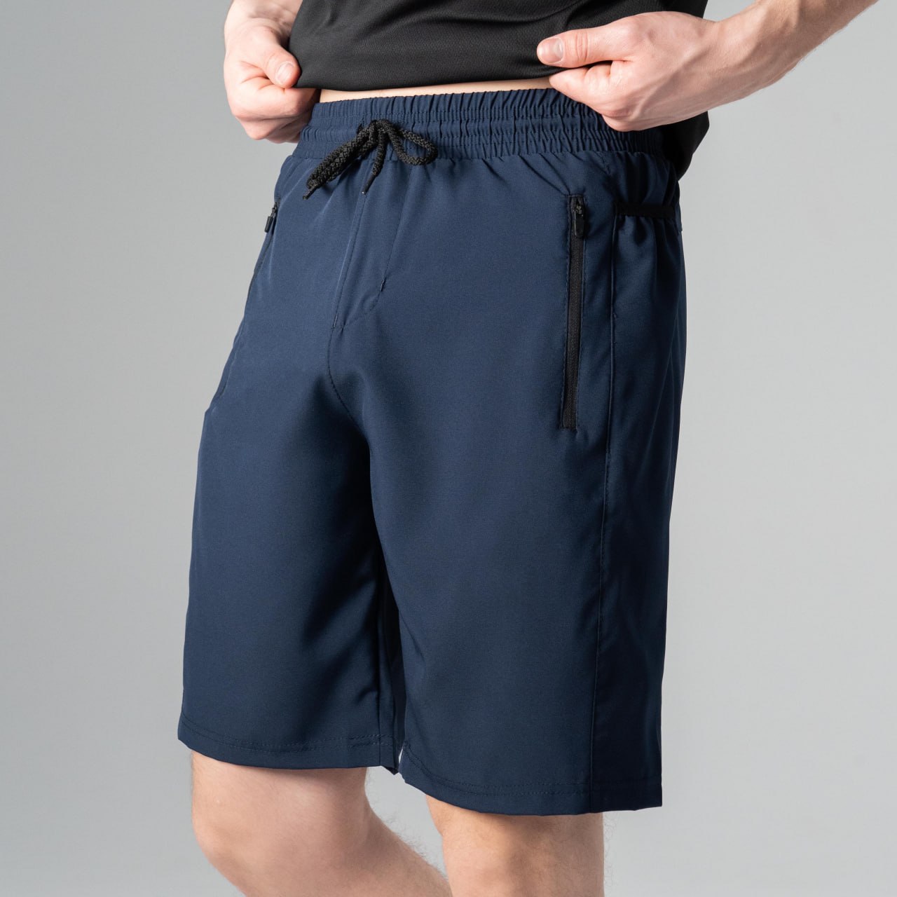 Мужские Легкие Летние Темно-Синие Шорты Свободного Кроя – Базовые на Резинке со Шнурком