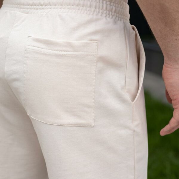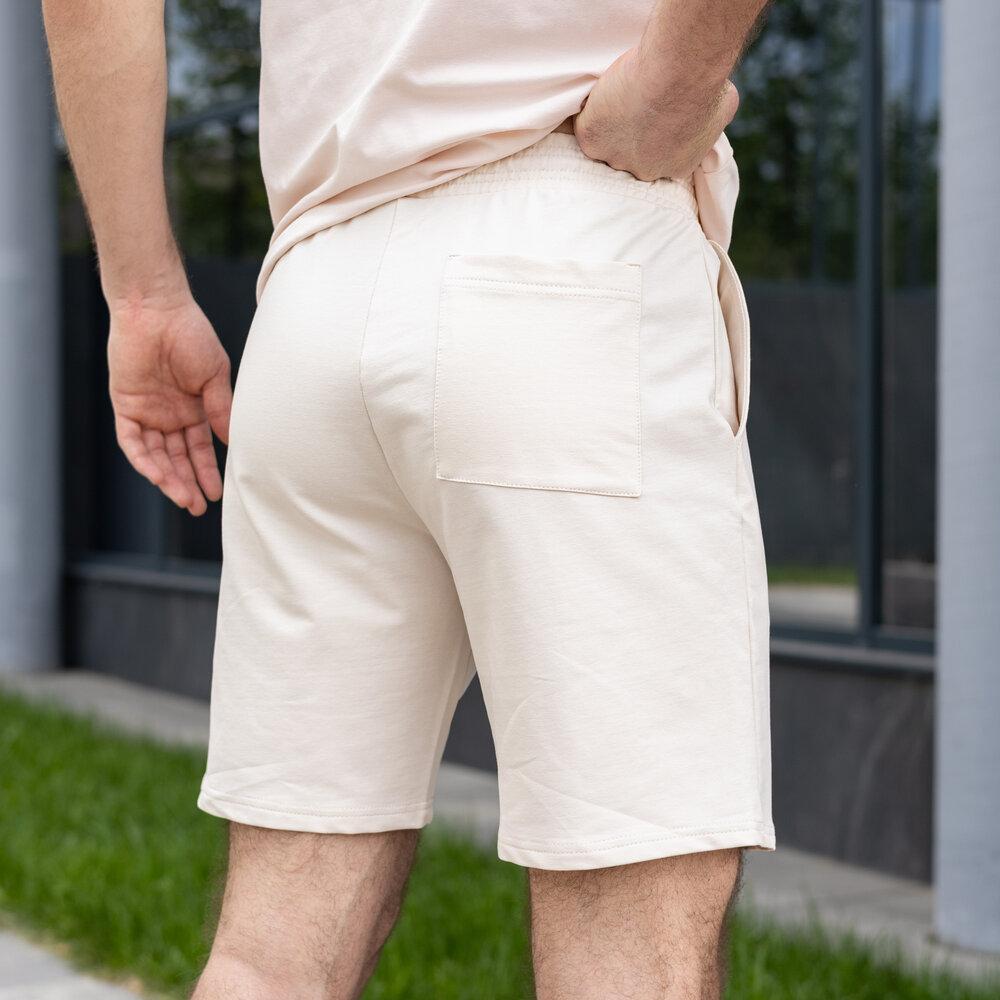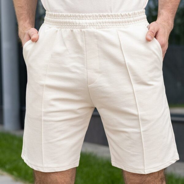 Мужские Летние Базовые Кремовые Шорты на Резинке со Стрелками