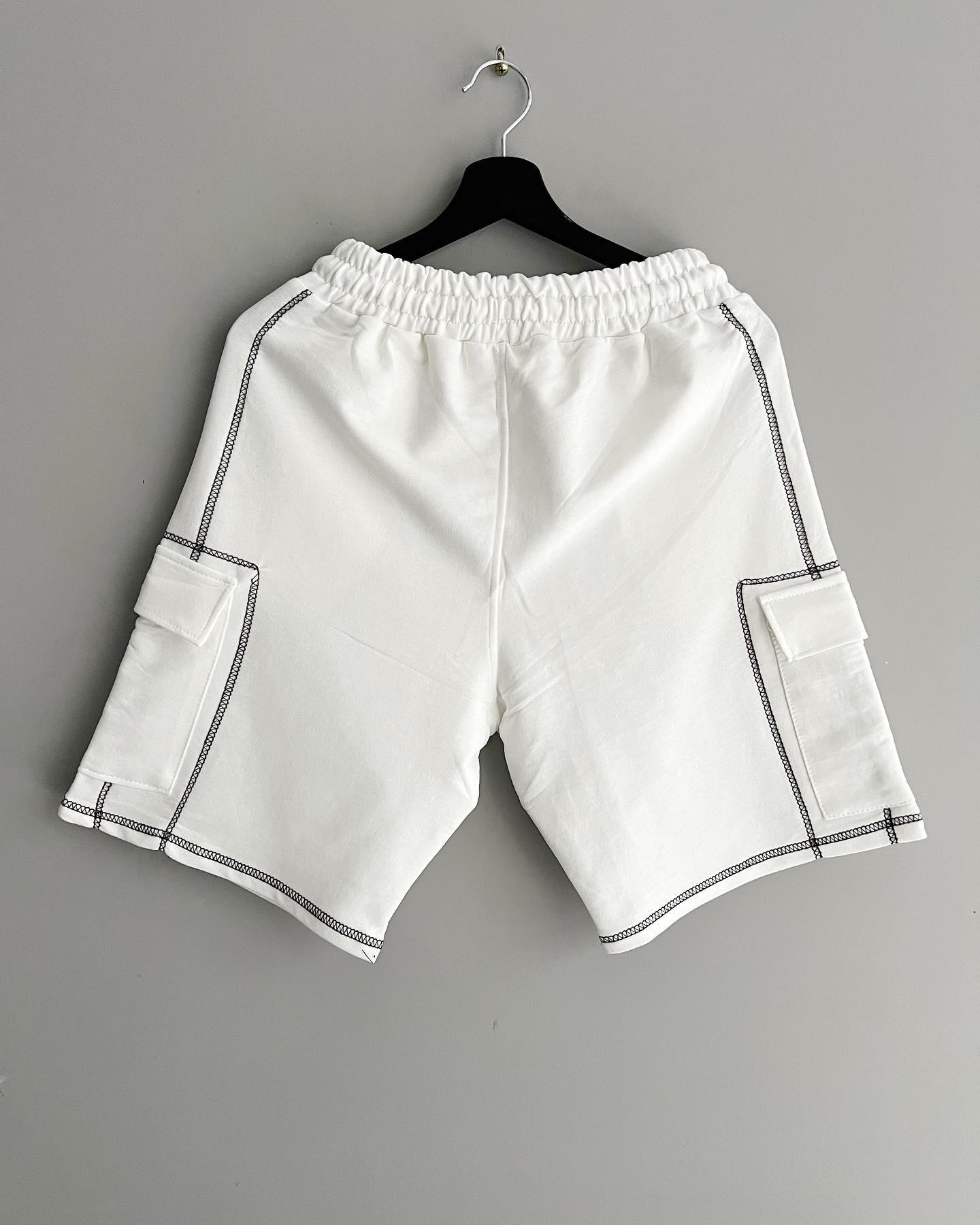 Мужские Летние Белые Шорты Хлопок с Накладными Карманами и Декоративными Швами