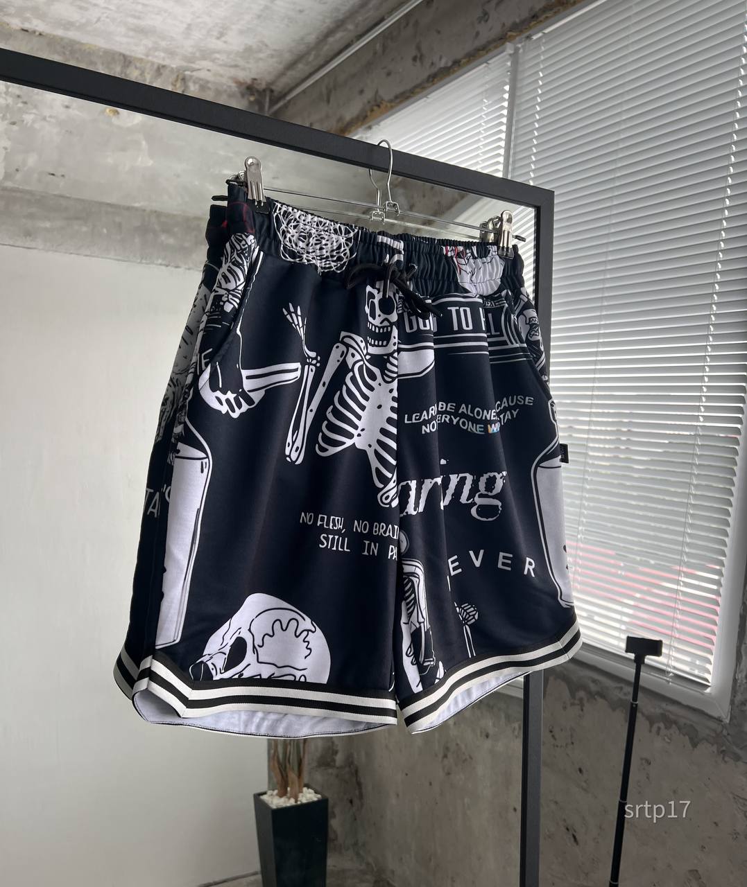 Мужские Летние Черно-Белые Шорты Двунитка Принт Скелет