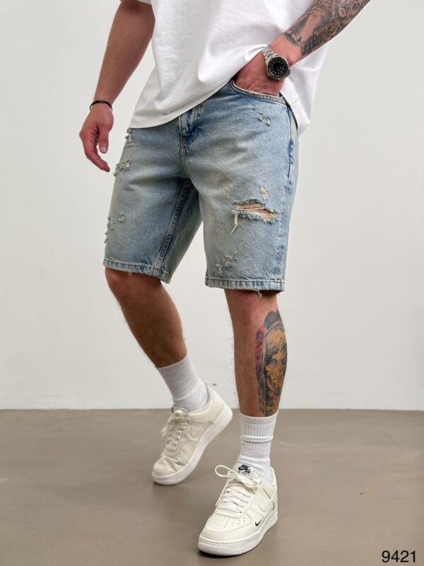Мужские Летние Голубые Рваные Джинсовые Шорты