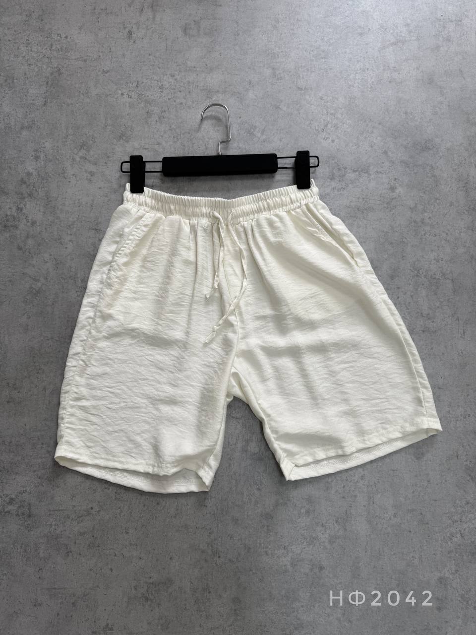 Мужские Летние Льняные Молочные Шорты Жатка на Резинке