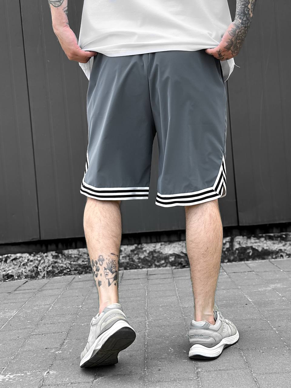 Мужские Летние Серые Шорты Плащевка с Полосками Внизу