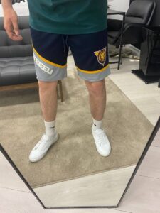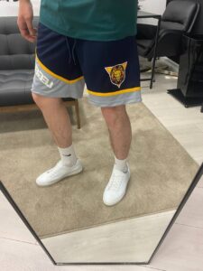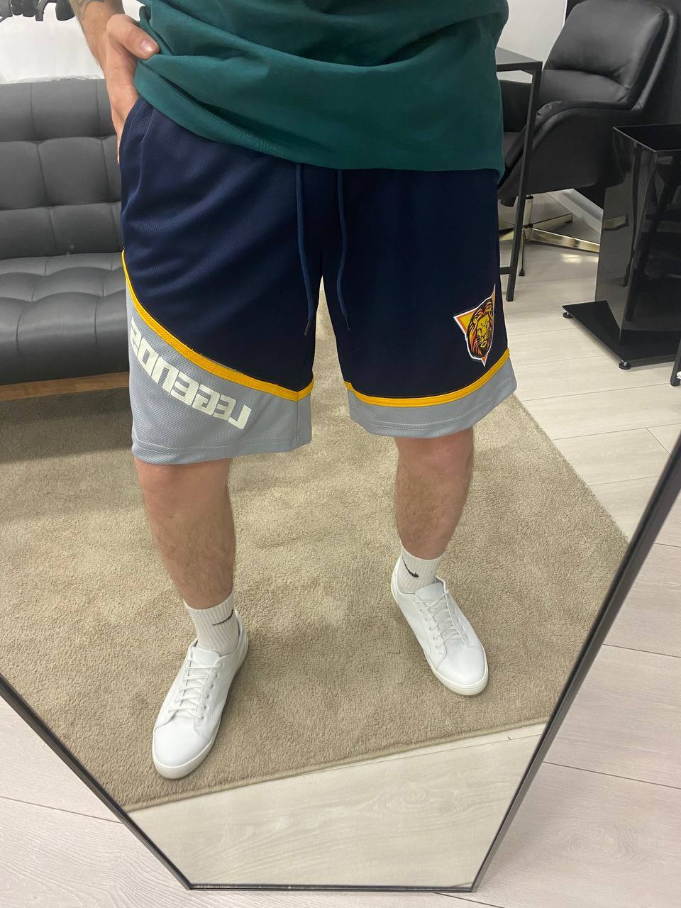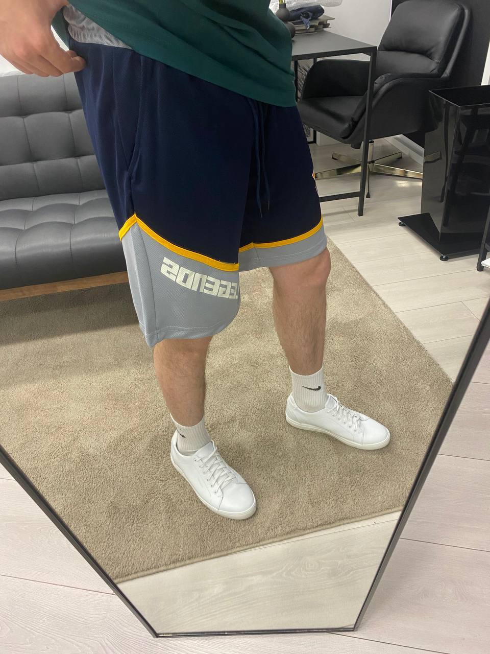 Мужские Летние Темно-Синие Шорты – Свободного Кроя на Шнурке с Серыми Вставками и Желтым Кантом