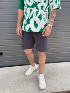 Мужские Летние Трикотажные Шорты Графитового Цвета Свободного Кроя с Обрезанными Краями
