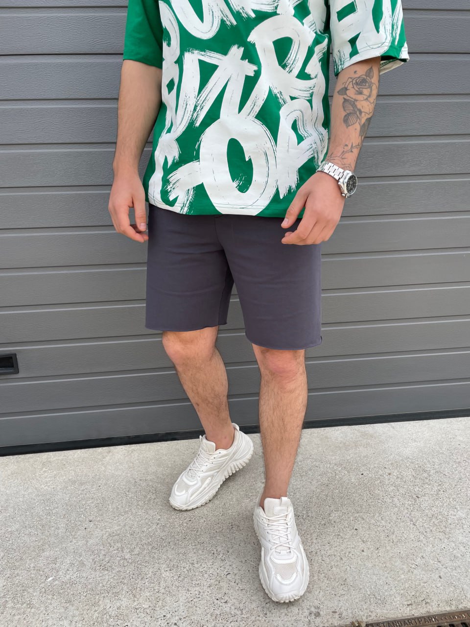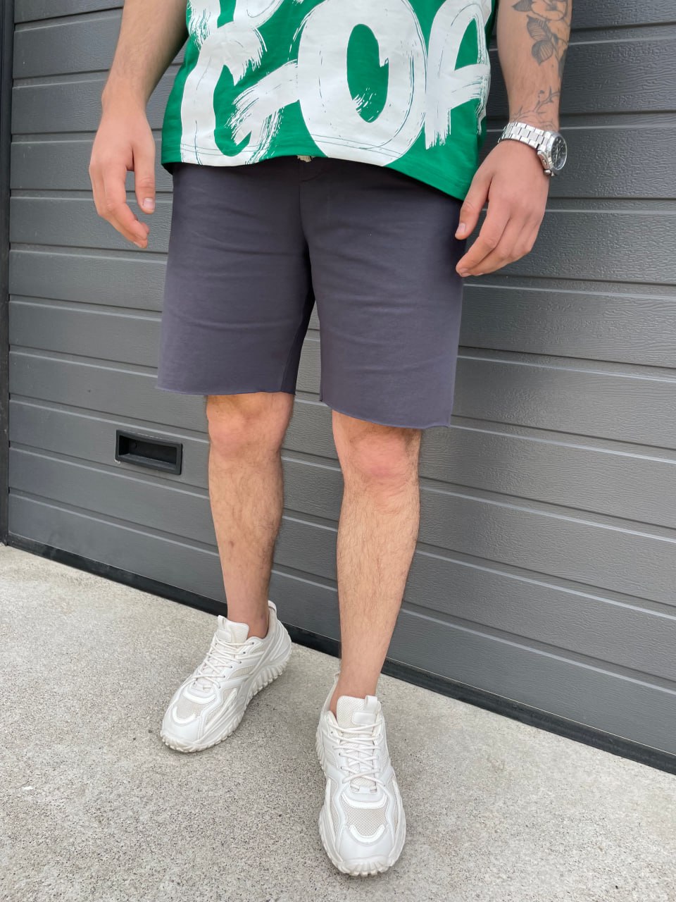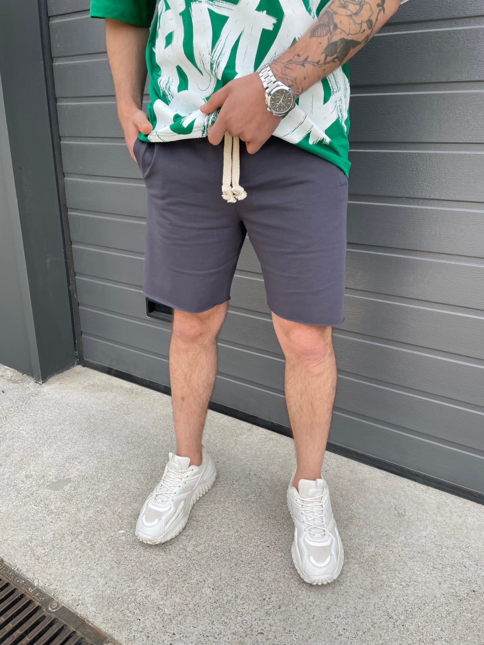 Мужские Летние Трикотажные Шорты Графитового Цвета Свободного Кроя с Обрезанными Краями