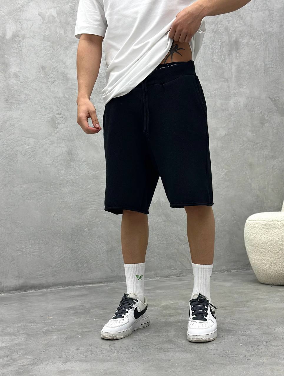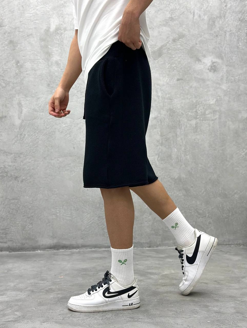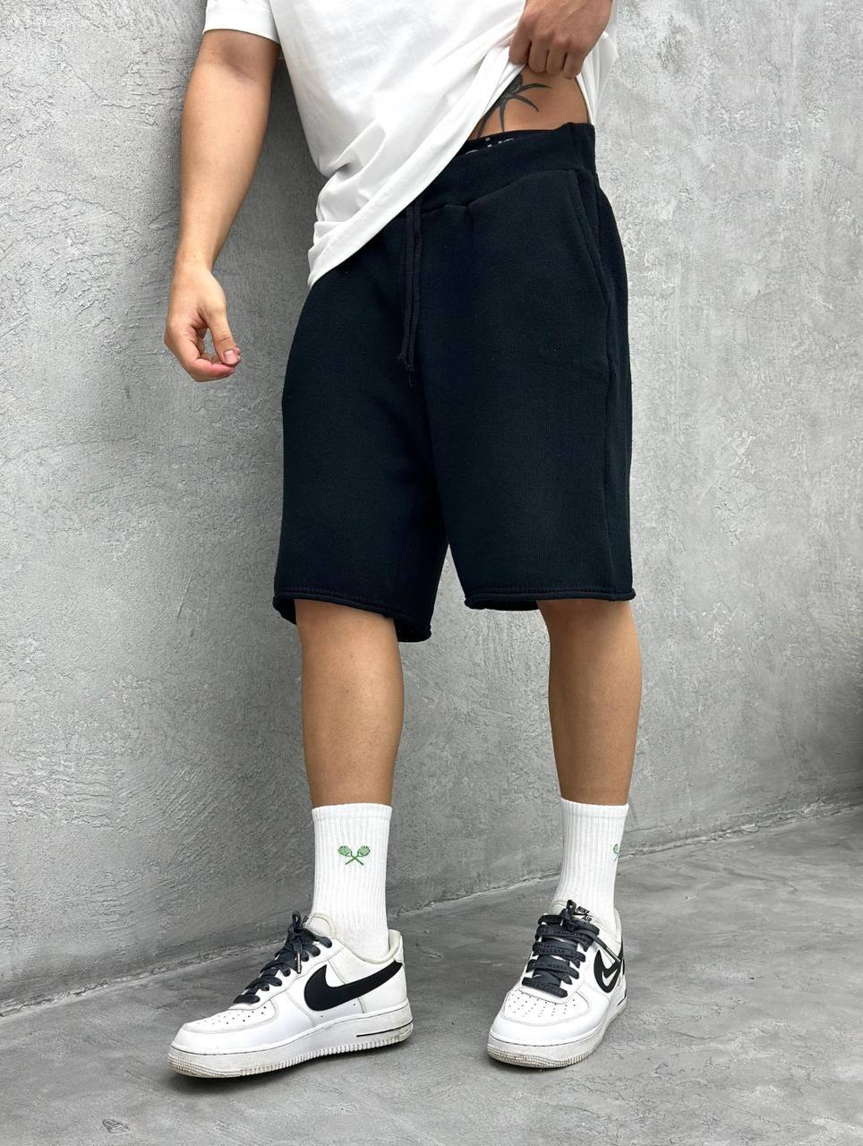 Мужские Летние Вязаные Черные Шорты Свободного Кроя со Шнурком