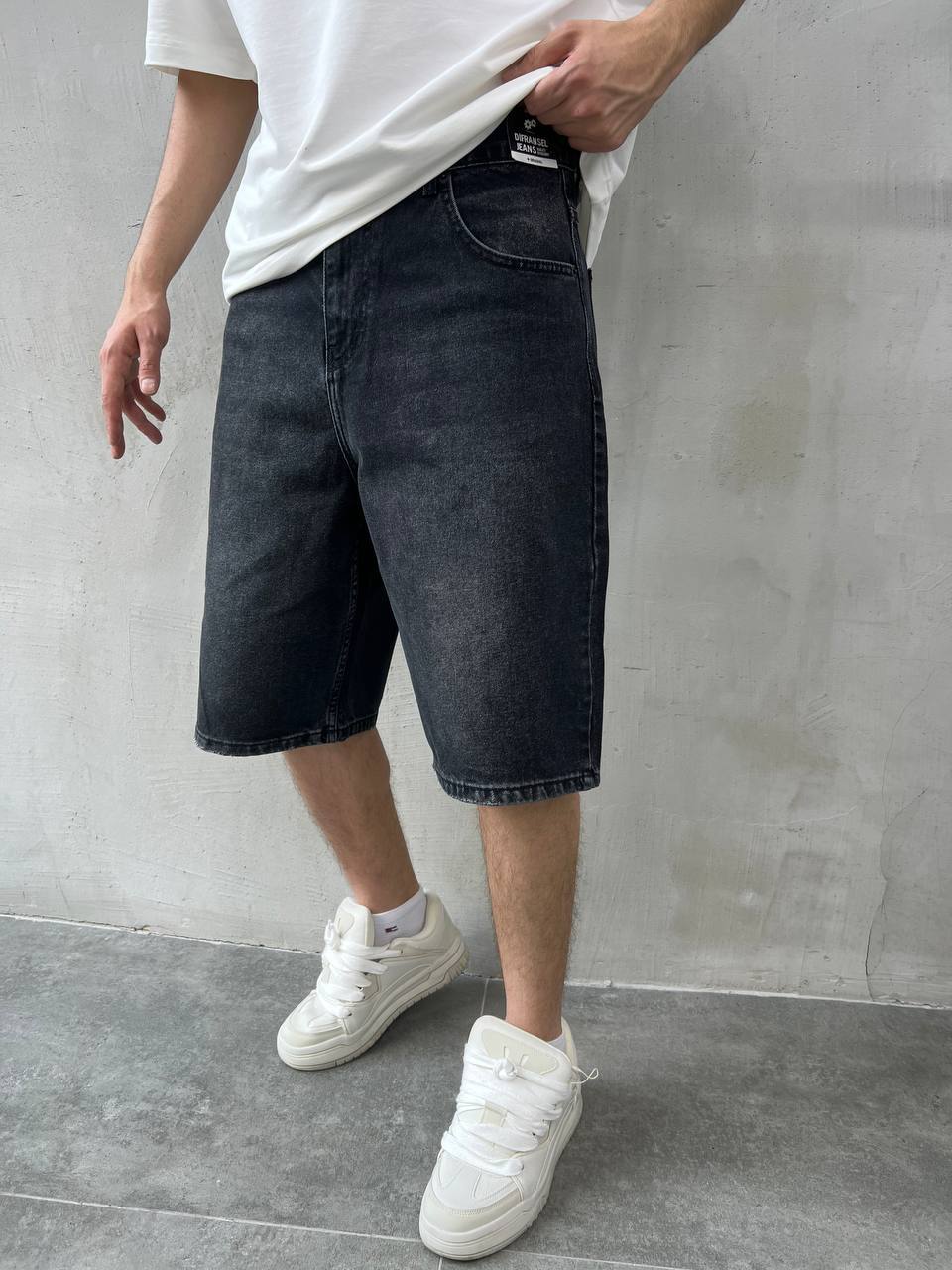 Мужские Широкие Черные Джинсовые Шорты Багги