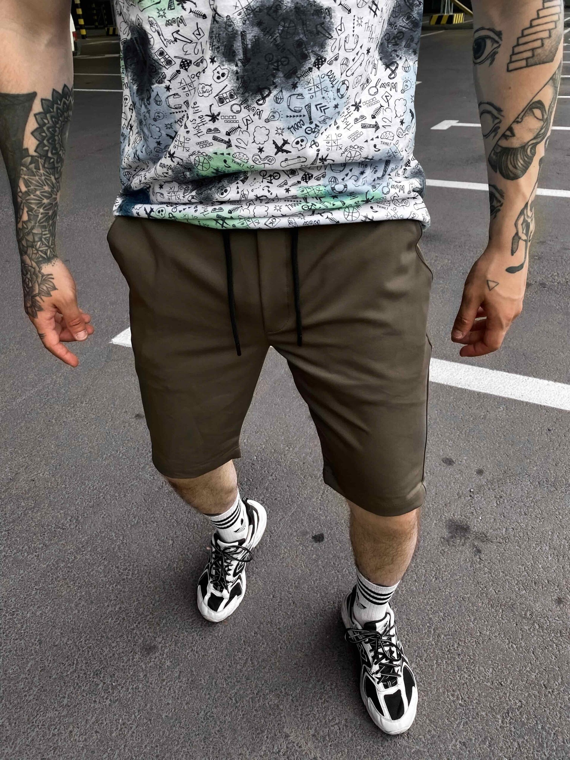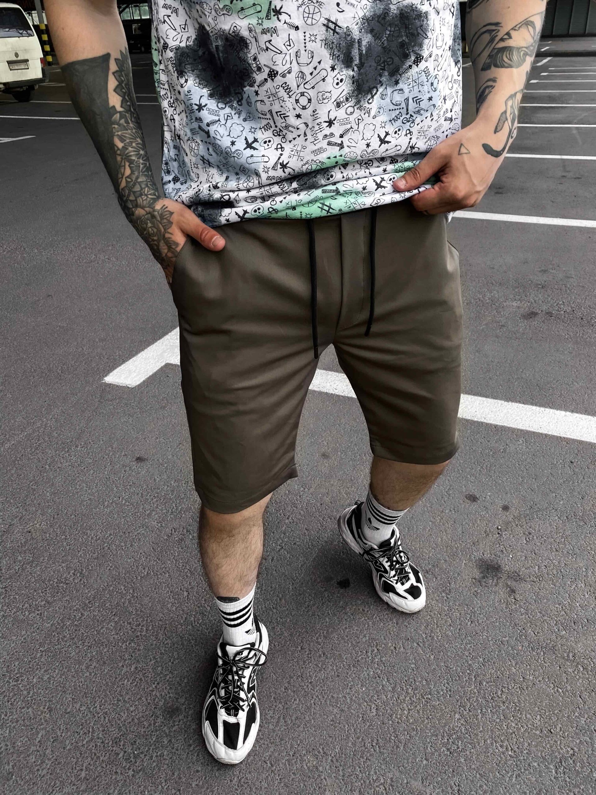 Мужские Шорты Цвета Хаки – Базовые Классические с Подворотом