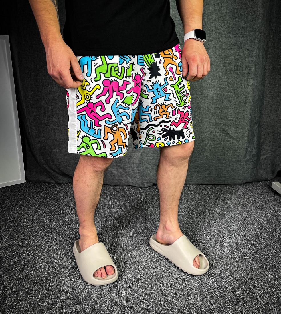 Мужские Яркие Разноцветные Шорты в Принт с Лампасами – Летние Коттоновые на Резинке