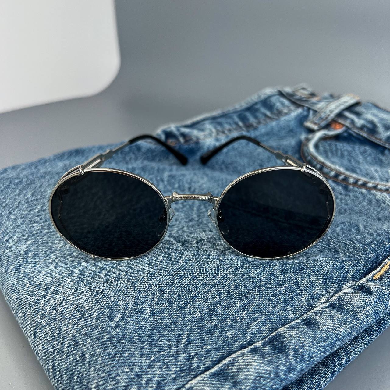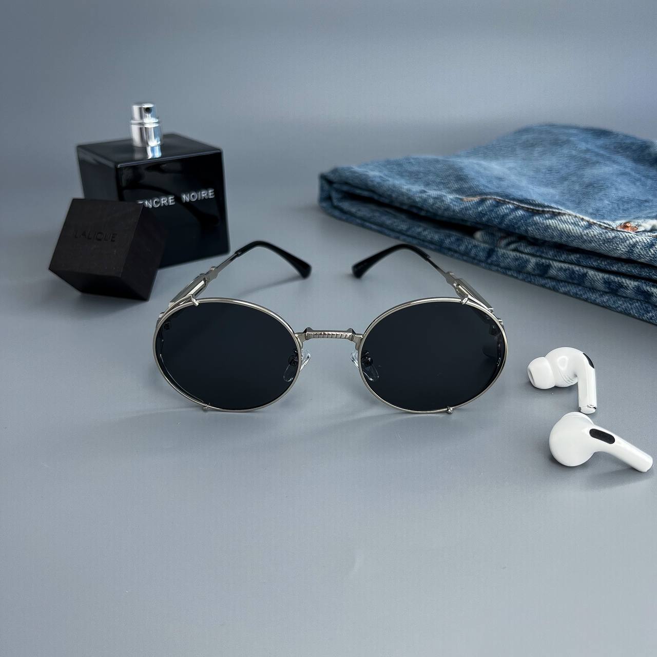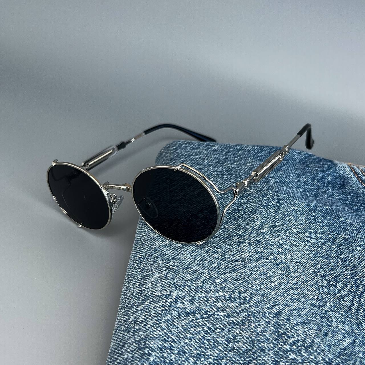 Мужские Круглые Овальные Черные Солнцезащитные Очки – с Металлической Серебристой Оправой