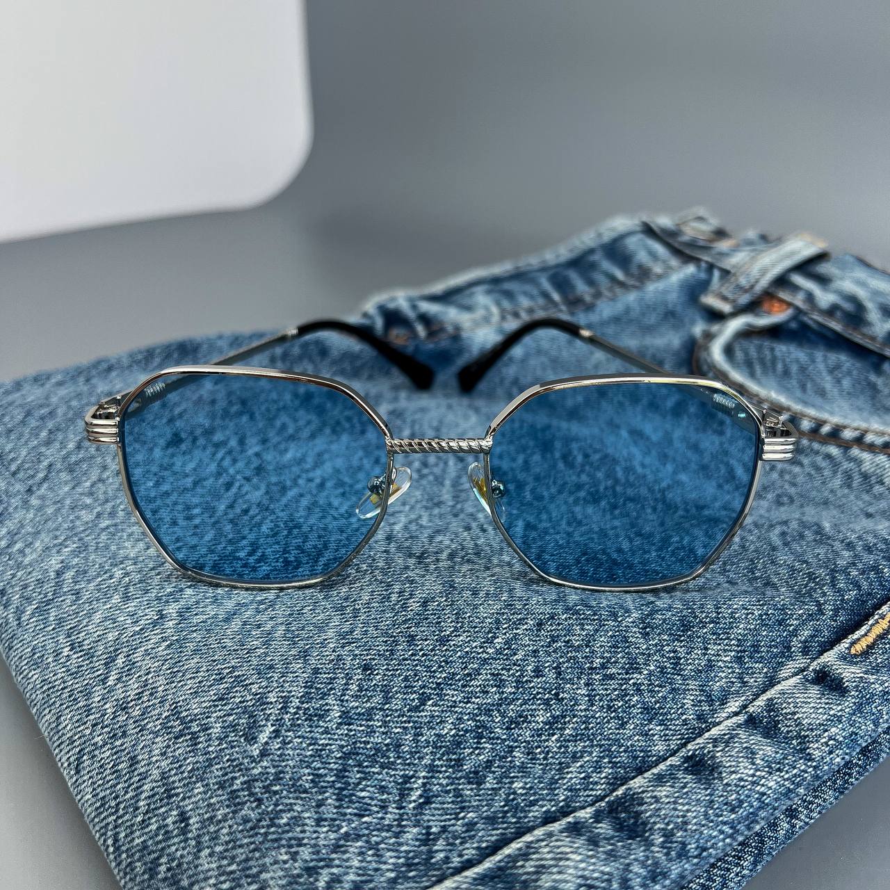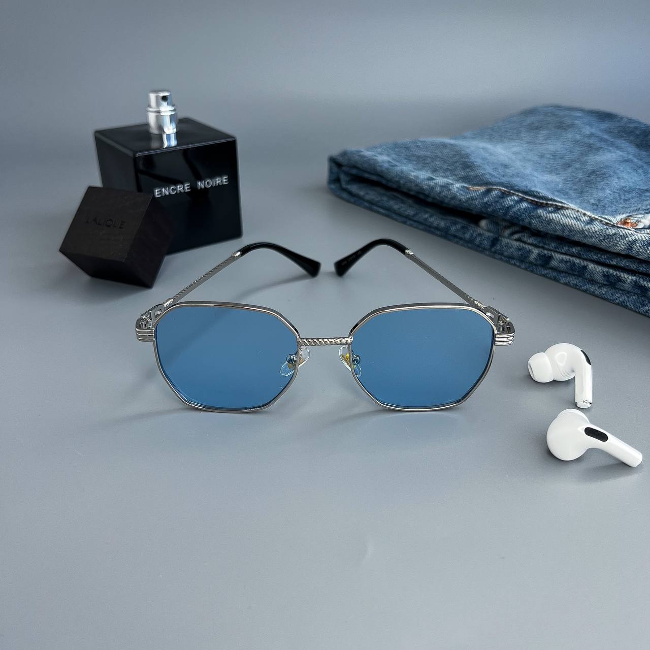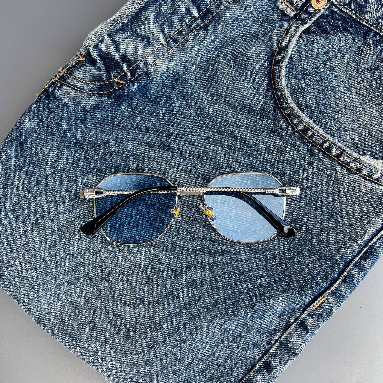 Мужские Стильные Синие Солнцезащитные Очки с Металлической Серебристой Оправой