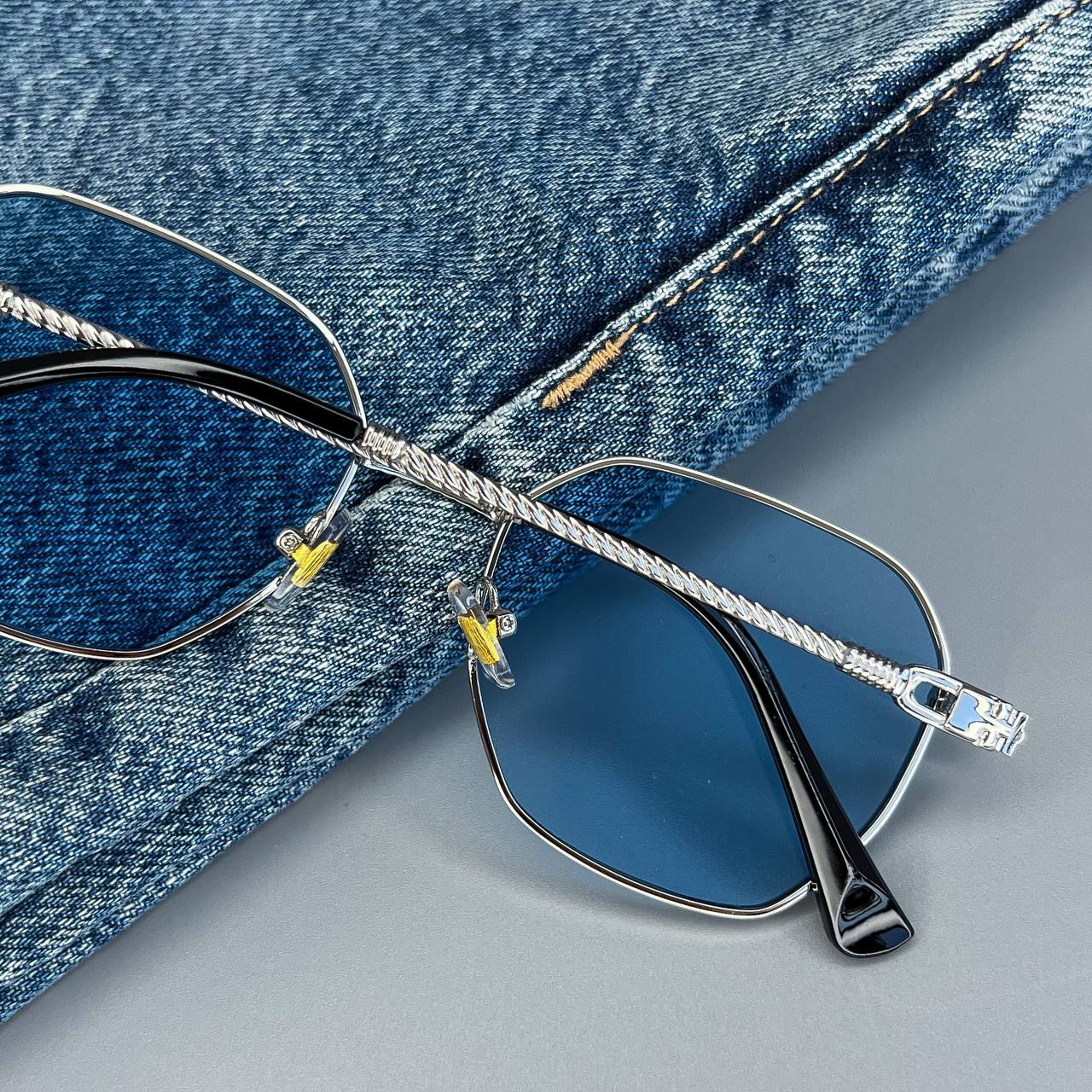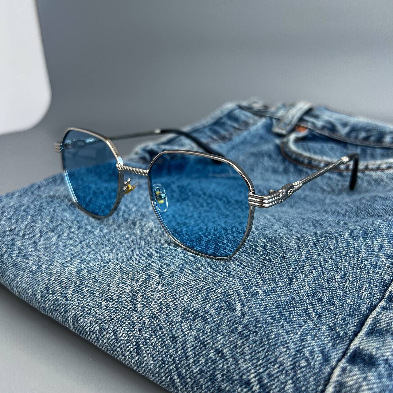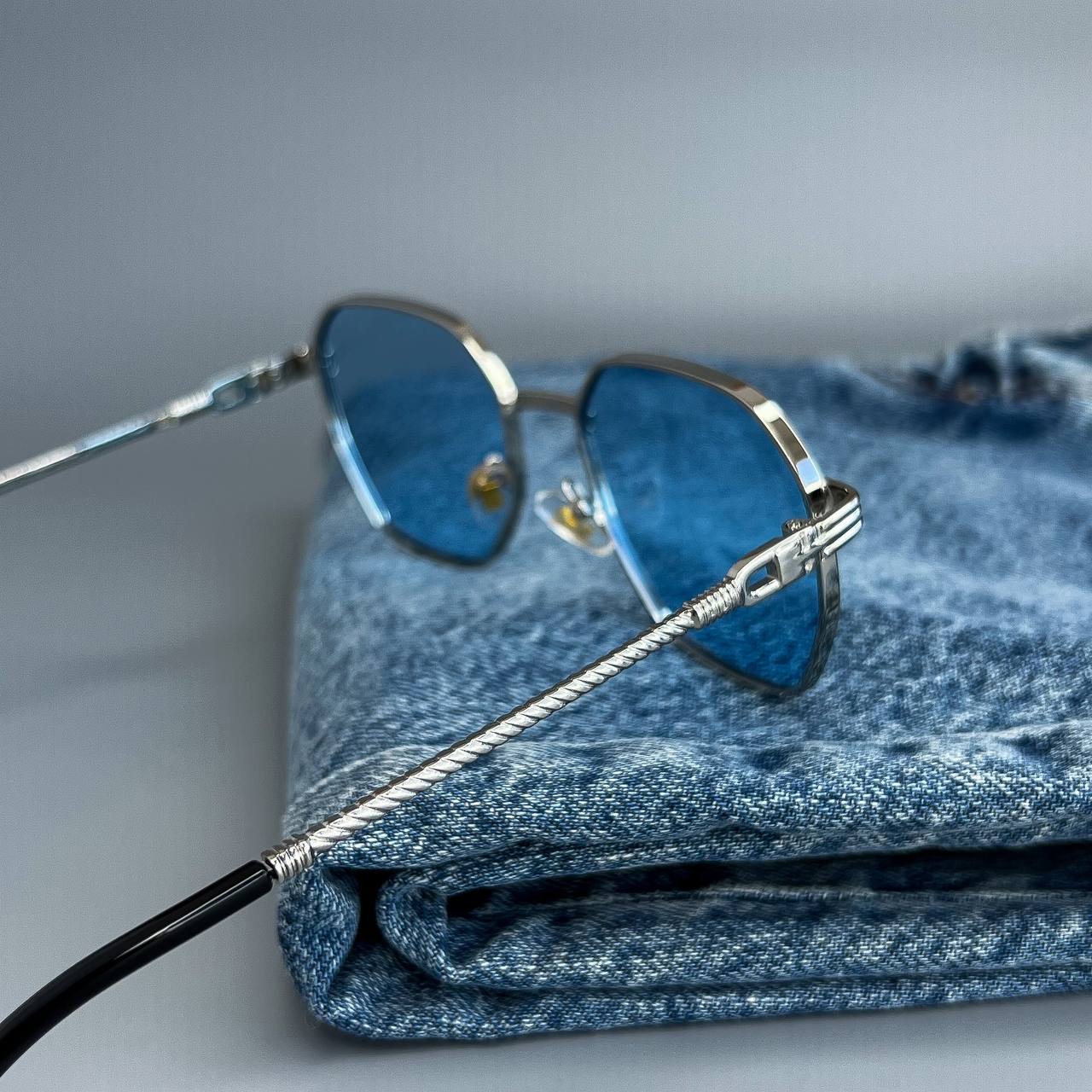 Мужские Стильные Синие Солнцезащитные Очки с Металлической Серебристой Оправой