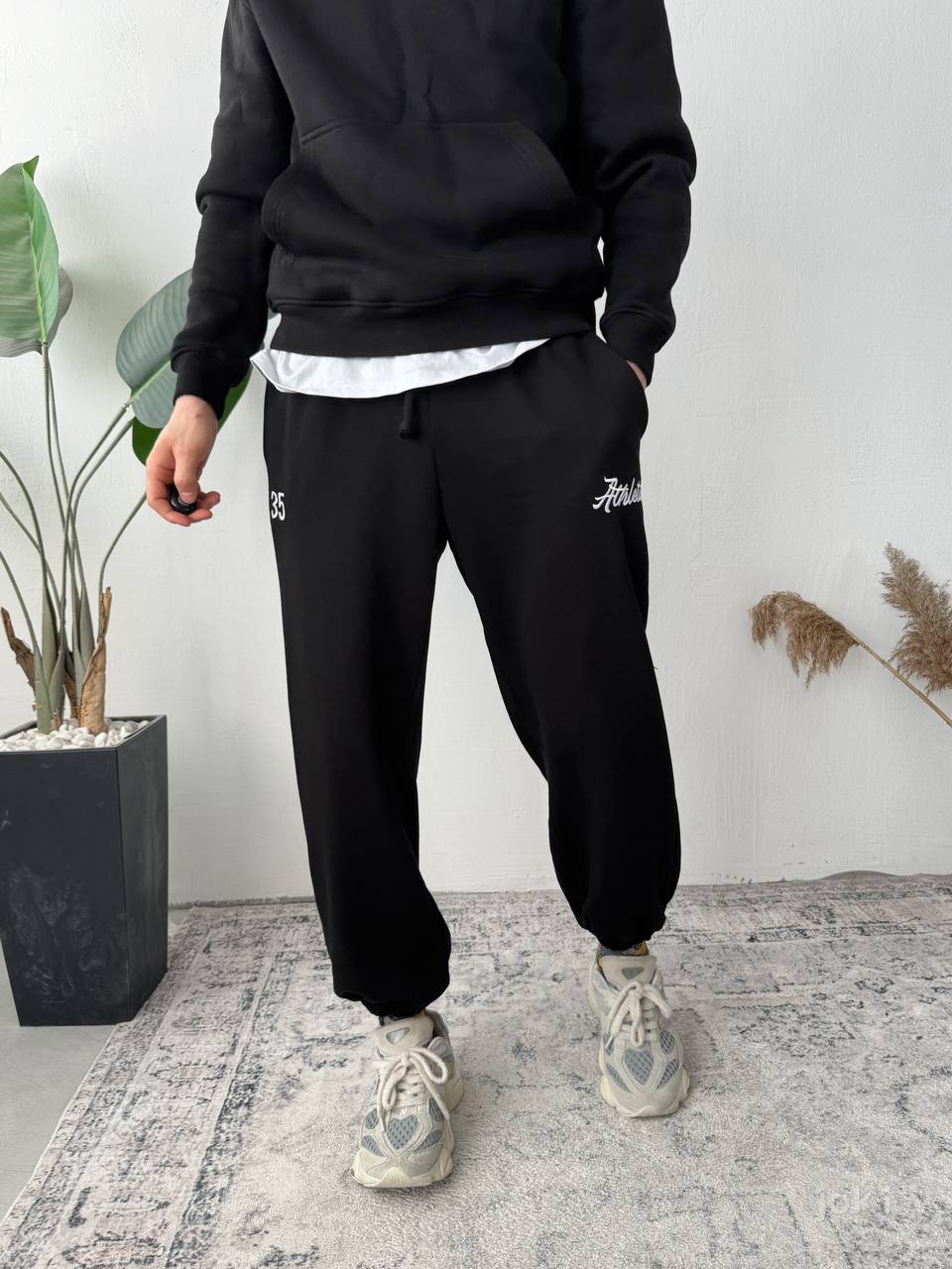 Мужские Базовые Черные Спортивные Штаны Джоггеры Свободного Кроя на Манжетах