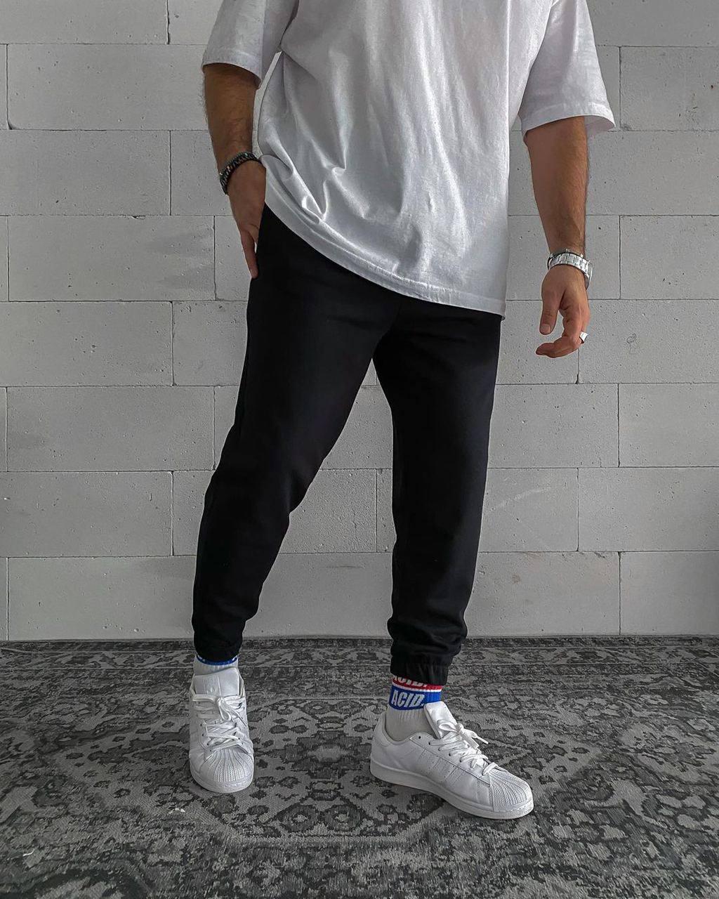 Мужские Базовые Штаны Джоггеры в Черном Цвете – Свободные с Манжетами на Резинках