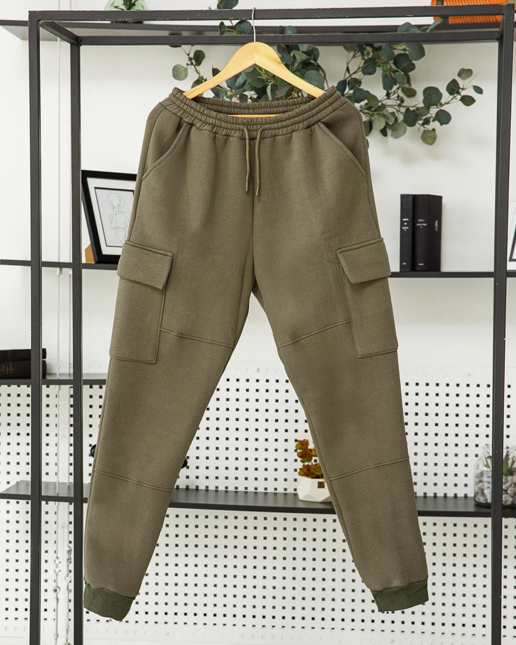 Мужские Базовые Спортивные Штаны Хаки Карго с Карманами и Манжетами