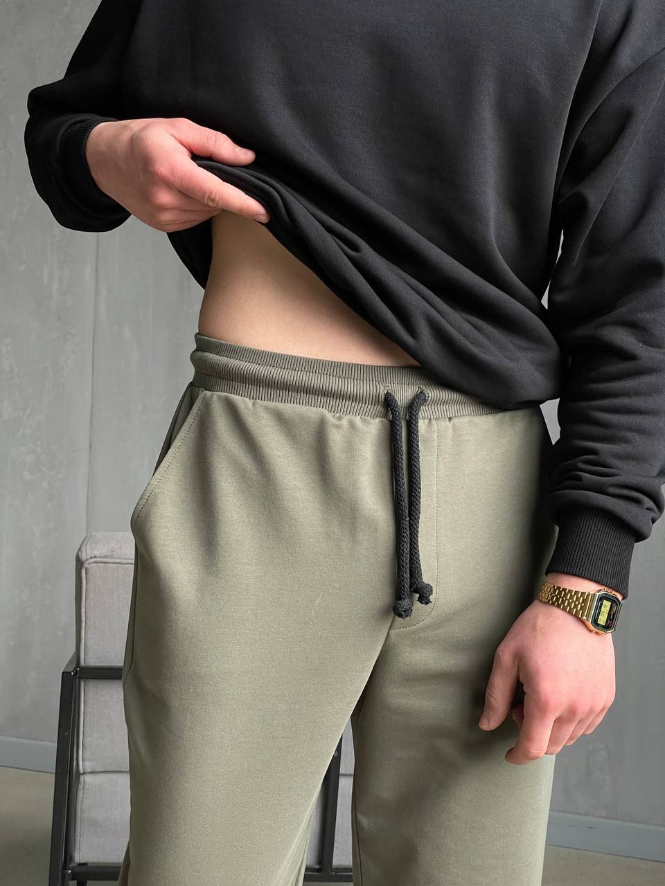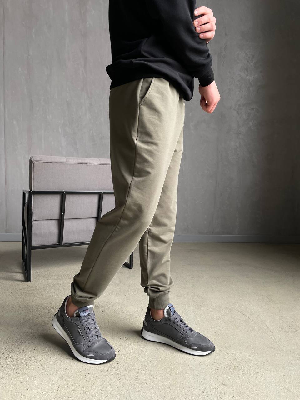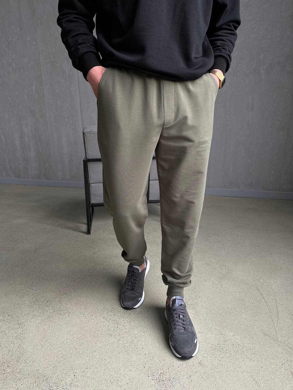 Мужские Базовые Спортивные Штаны в Цвете Хаки – Свободные на Шнурке с Манжетами