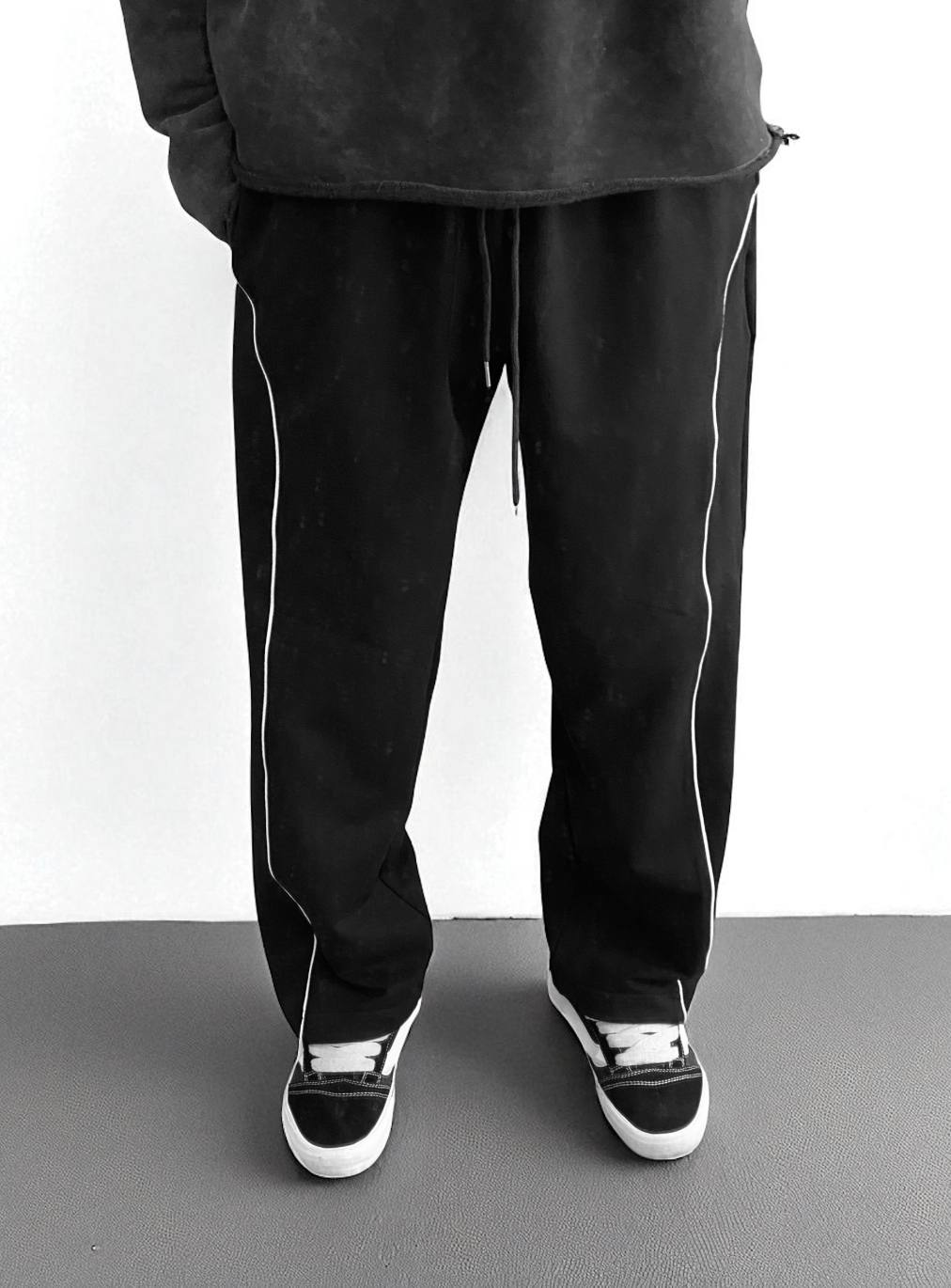 Мужские Черные Спортивные Штаны – Широкие Прямого Кроя с Кантом и Затяжками