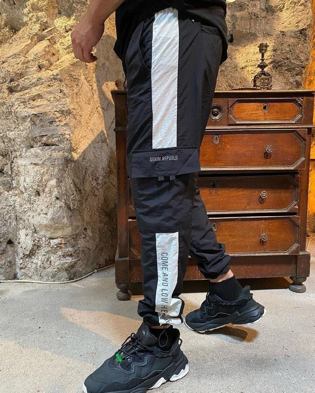 Мужские Черные Спортивные Штаны – Свободные с Лампасами на Манжетах
