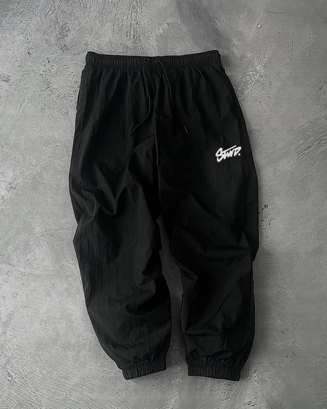 Мужские Широкие Черные Спортивные Штаны Плащевка с Манжетами