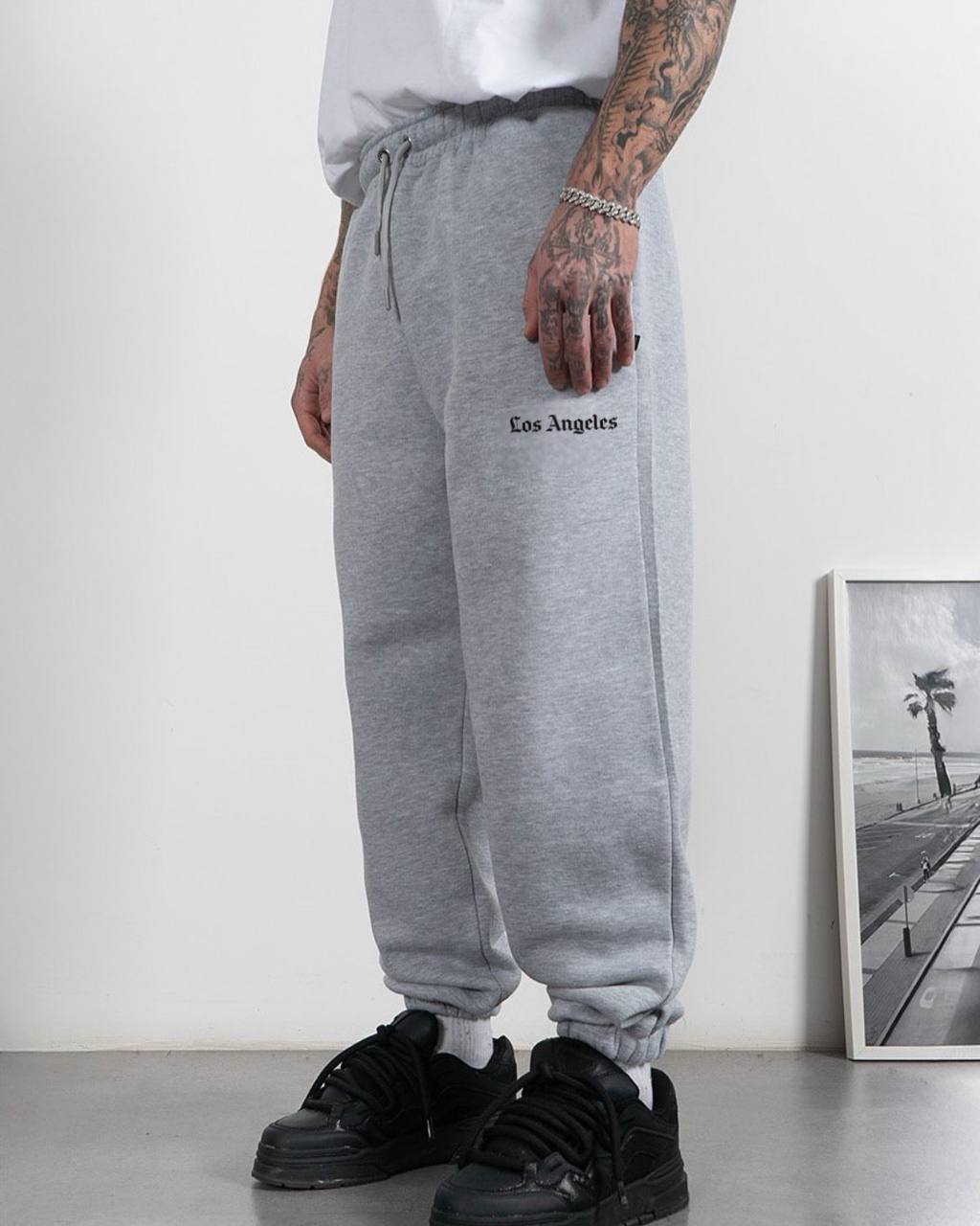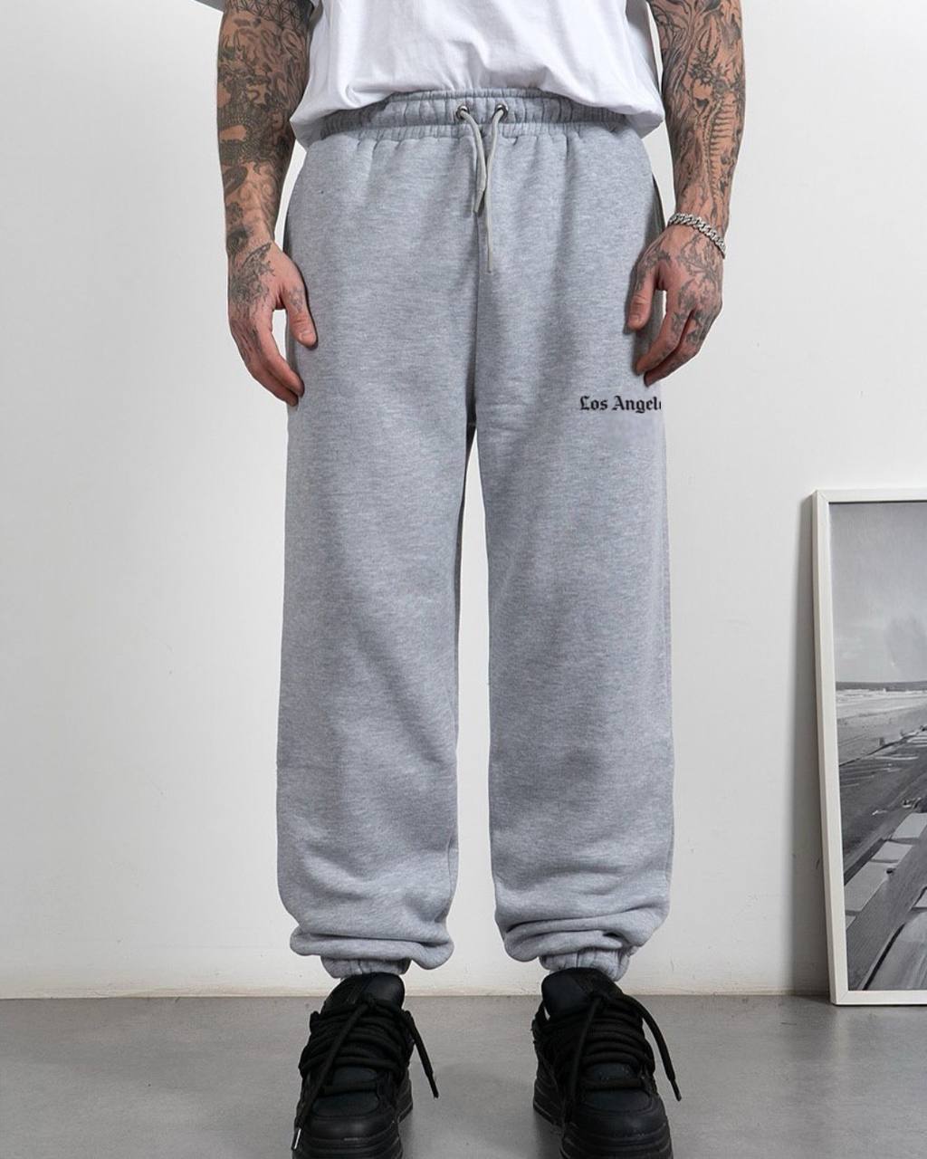 Мужские Широкие Серые Спортивные Штаны с Манжетами