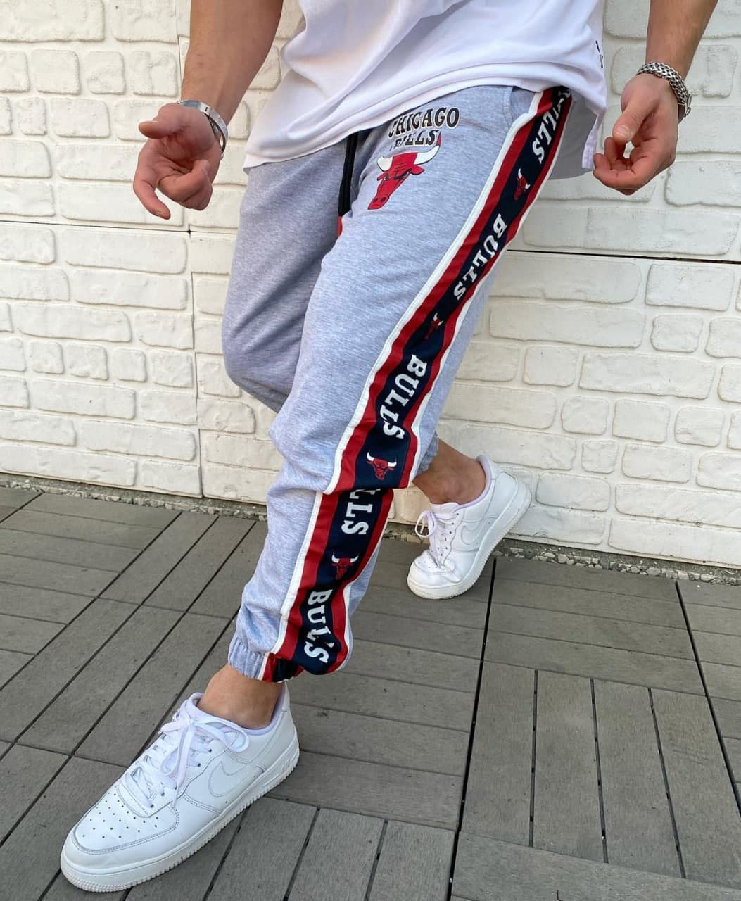 Мужские Спортивные Штаны в Сером Цвете с Лампасам- на Манжетах Свободные