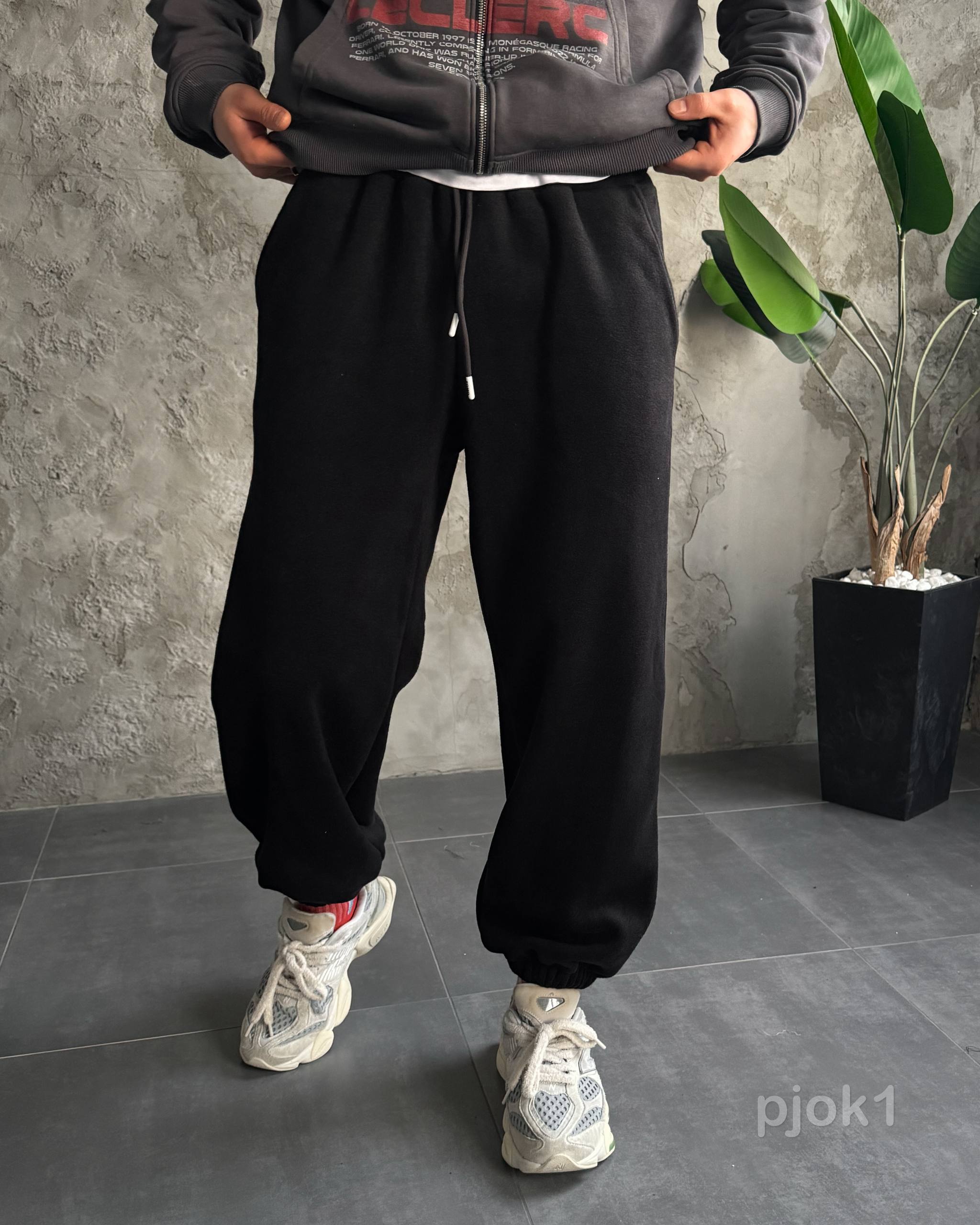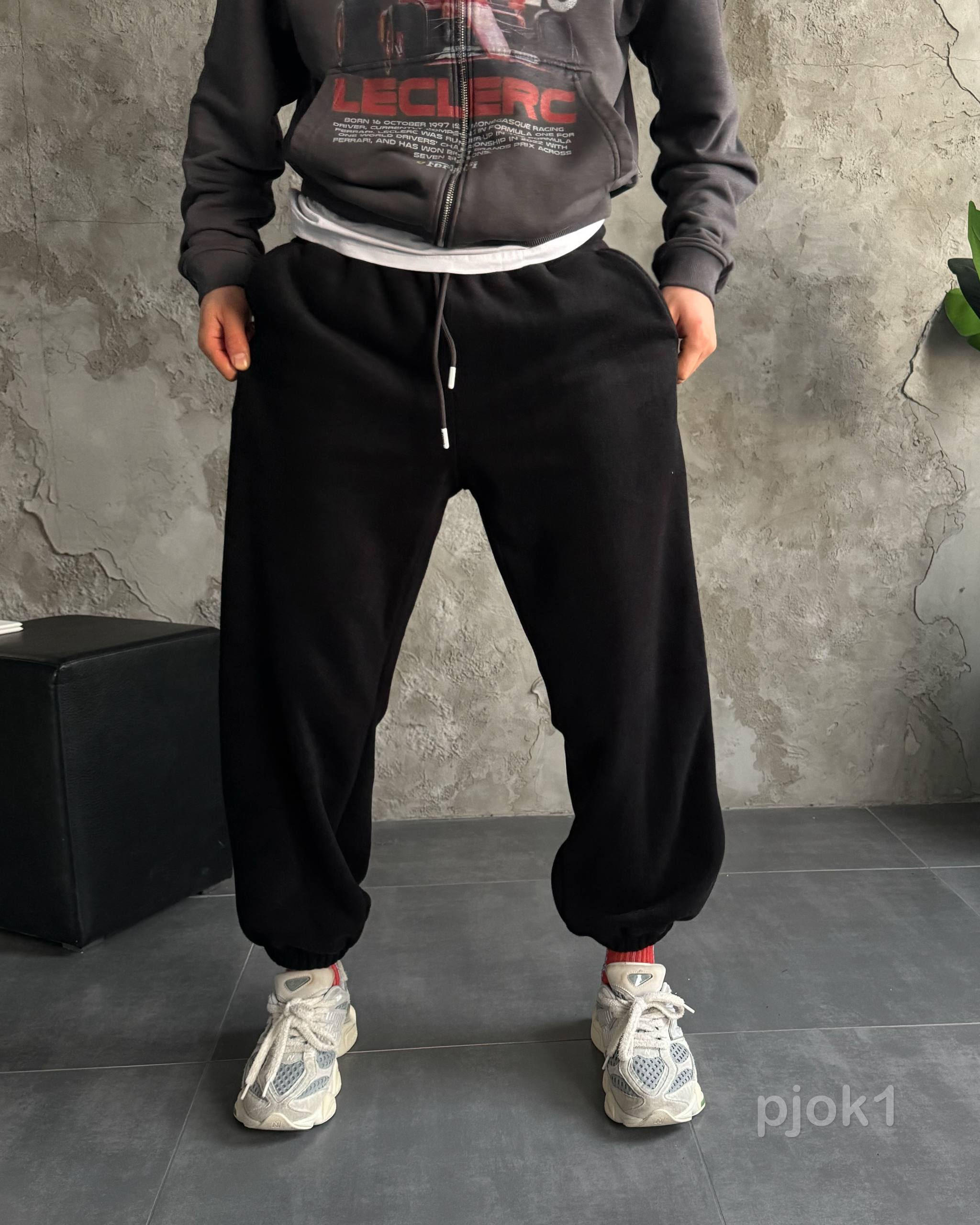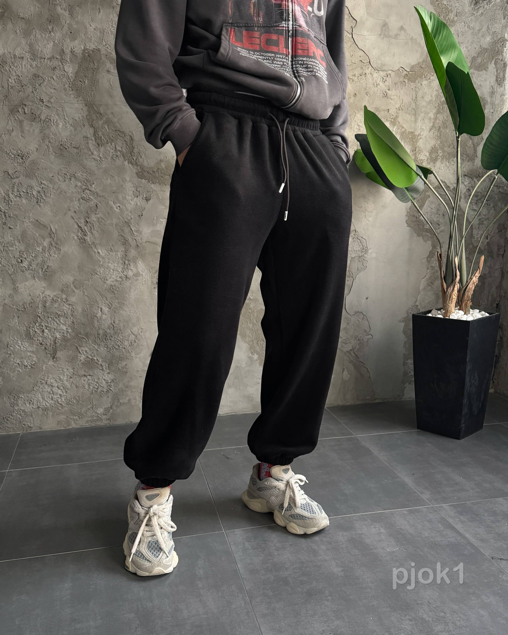 Мужские Теплые Флисовые Черные Штаны с Манжетами – Широкие Джоггеры