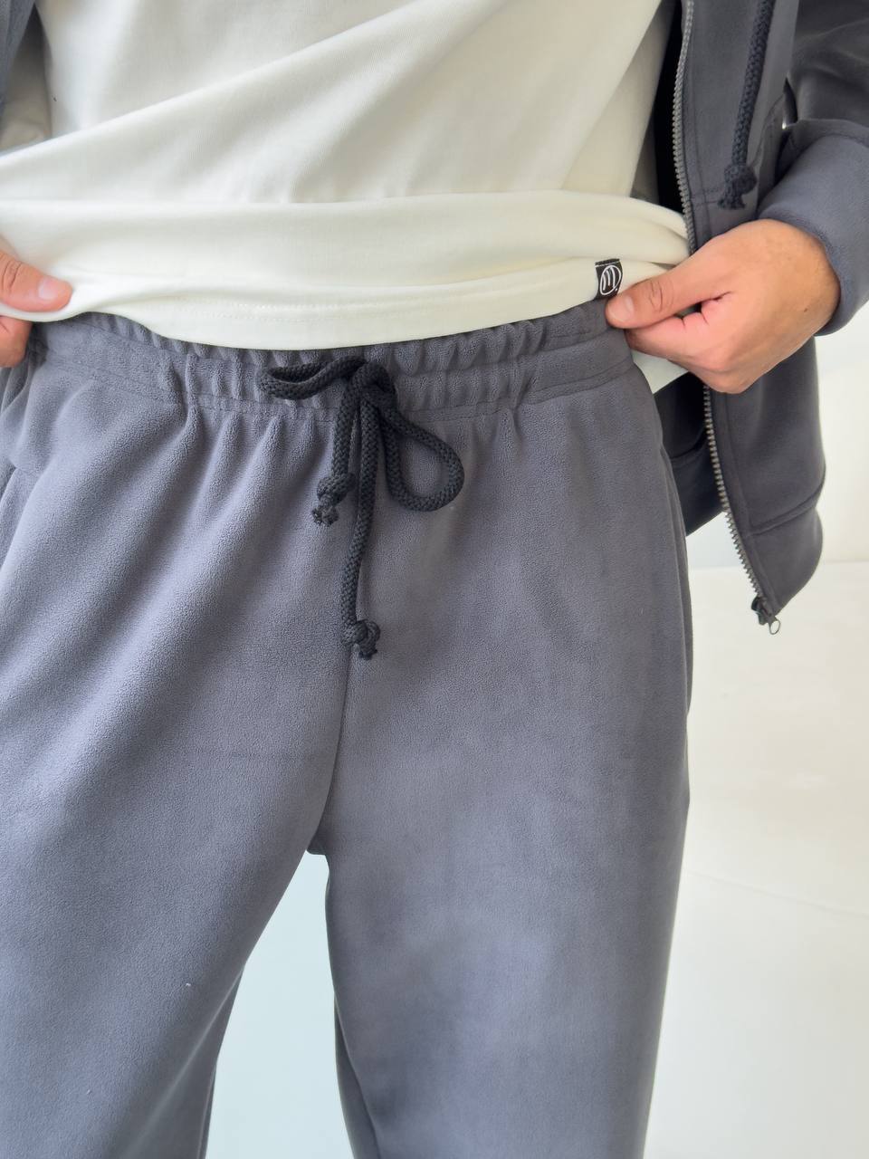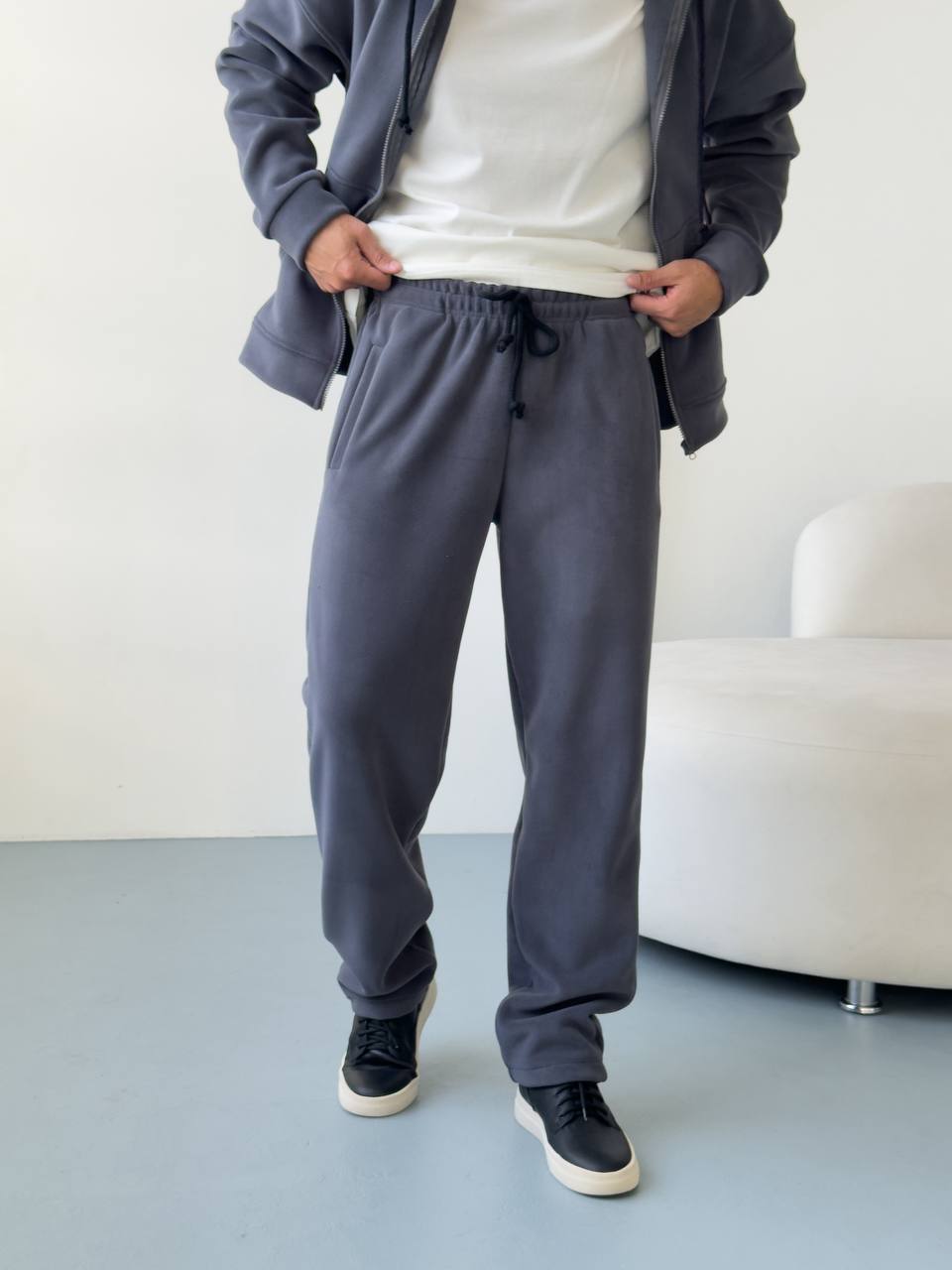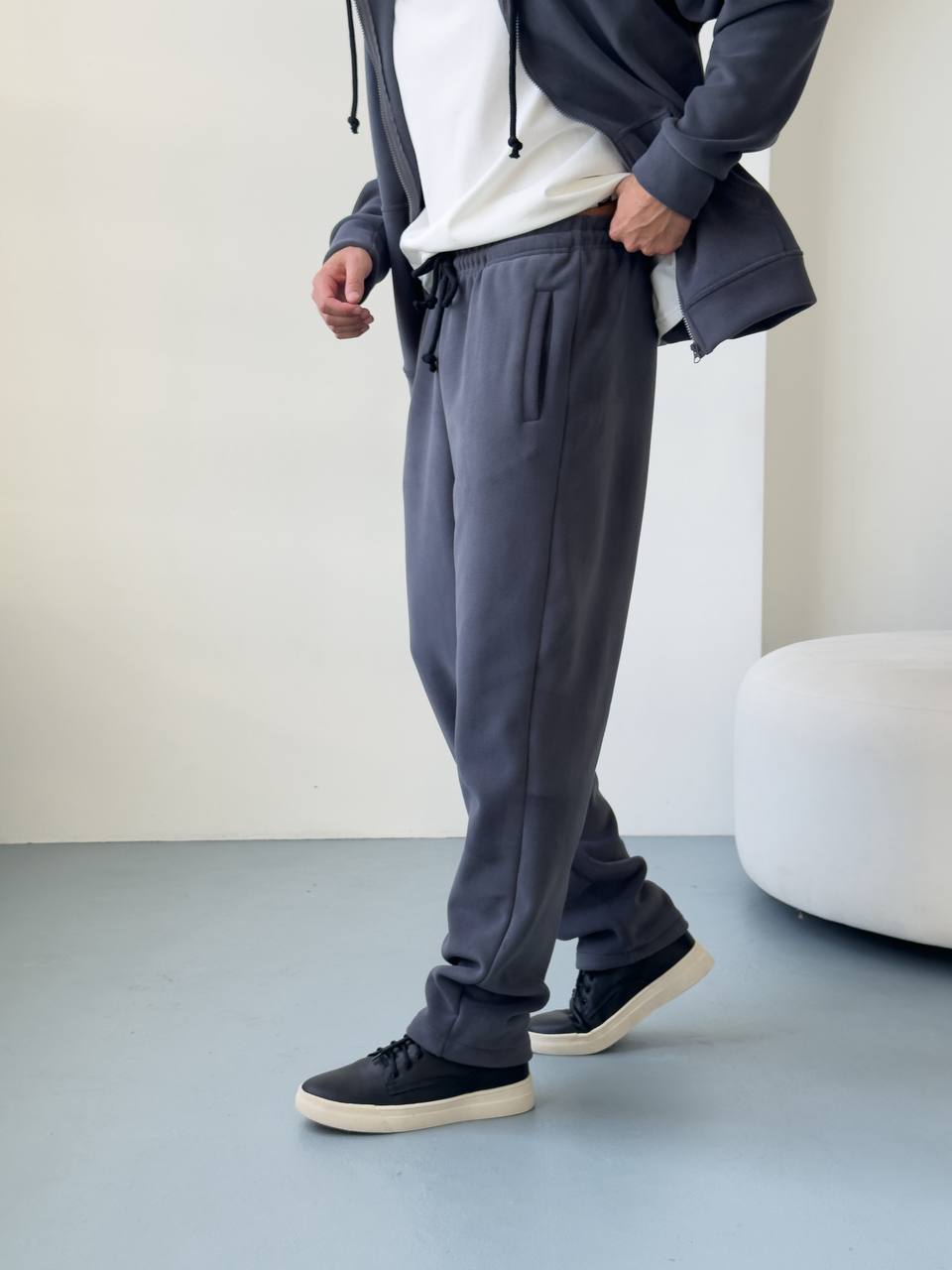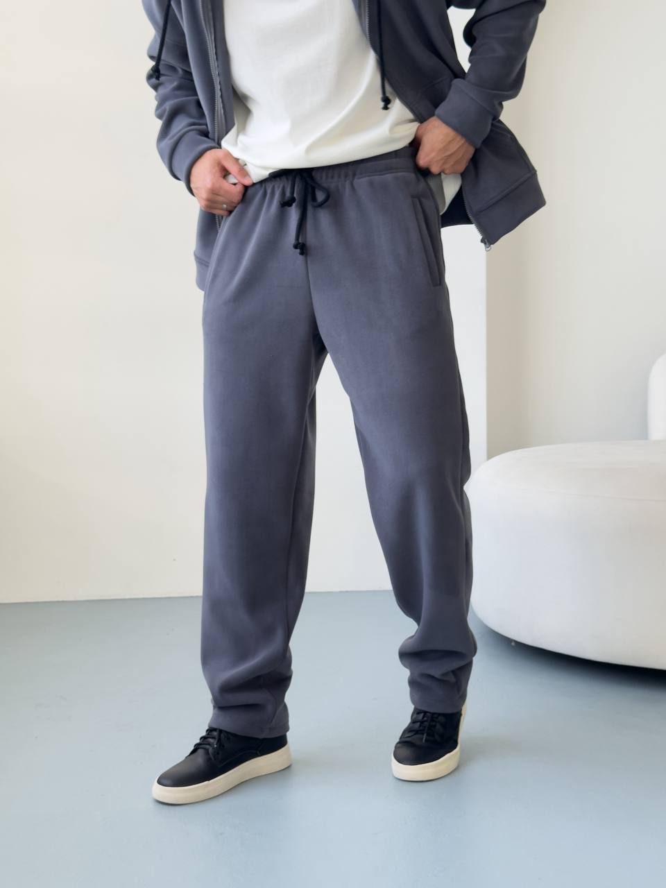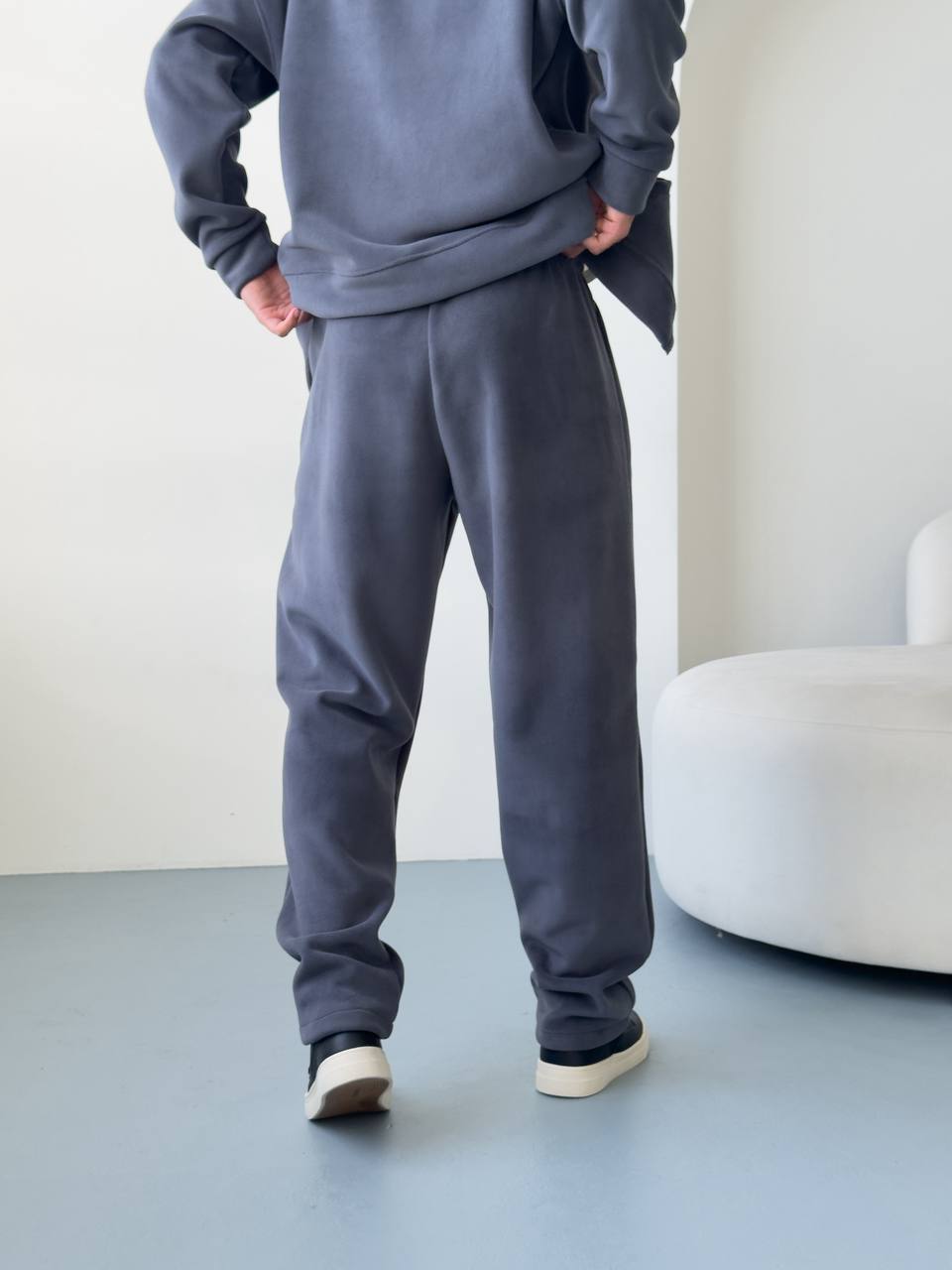 Мужские Теплые Широкие Темно-Серые Спортивные Штаны Багги