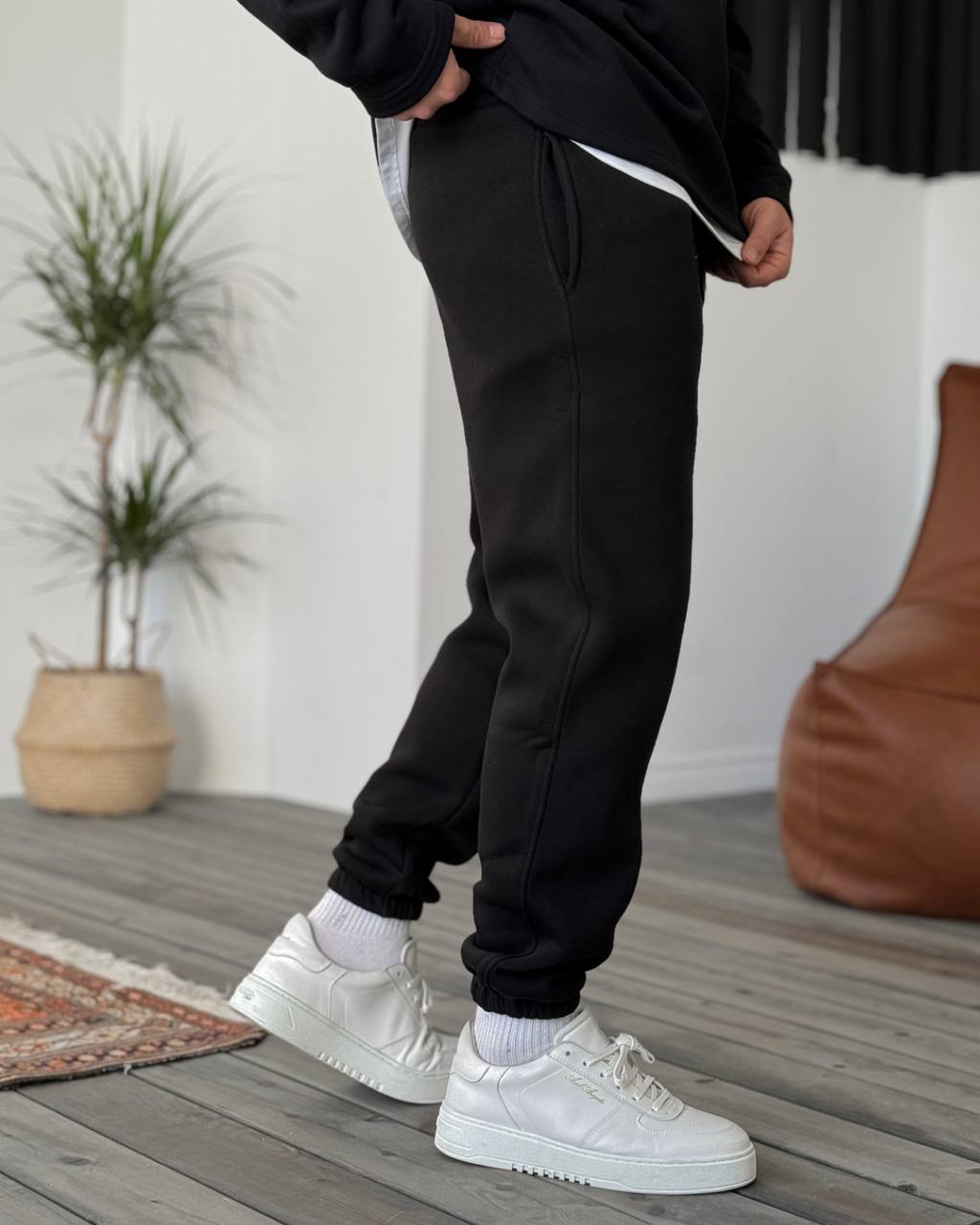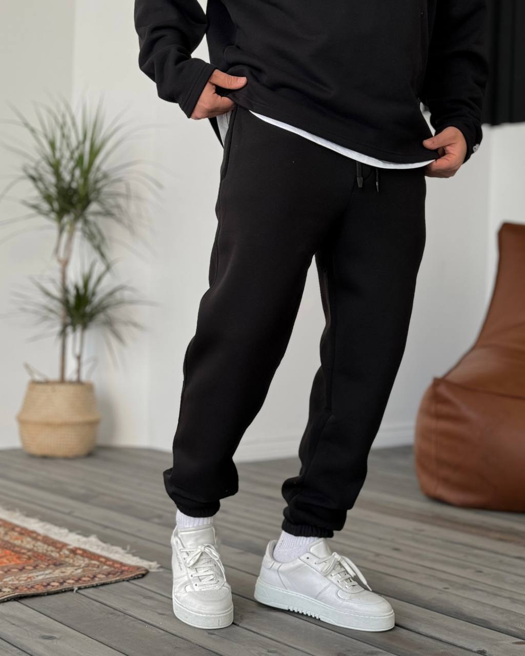 Мужские Утепленные Черные Спортивные Штаны Джоггеры – Свободного Кроя на Флисе
