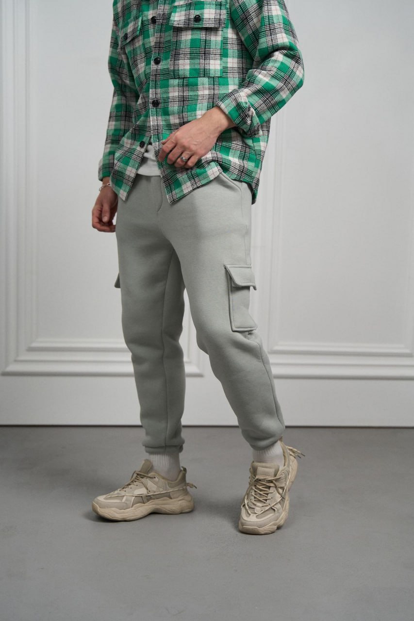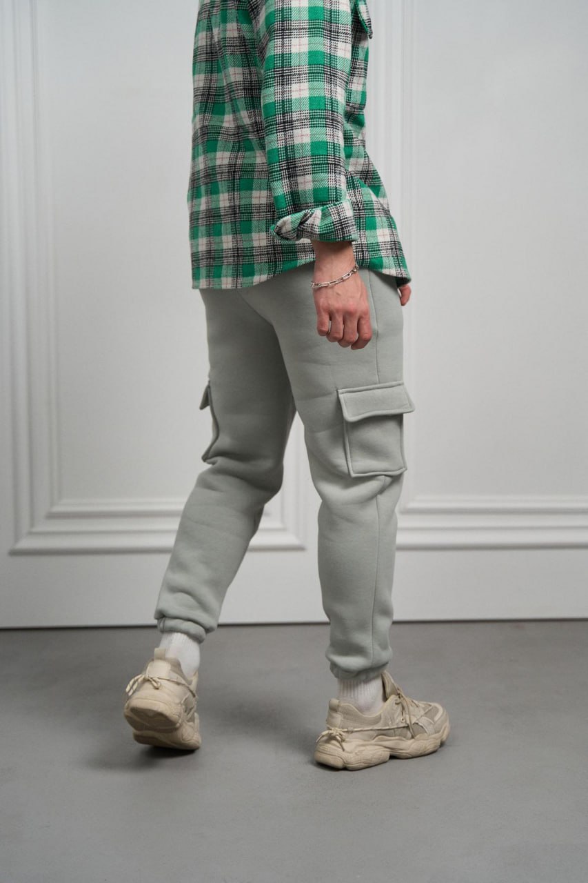Мужские Утепленные Мятные Штаны Брюки Карго Трехнитка на Флисе – Свободные с Манжетами и Накладными Карманами