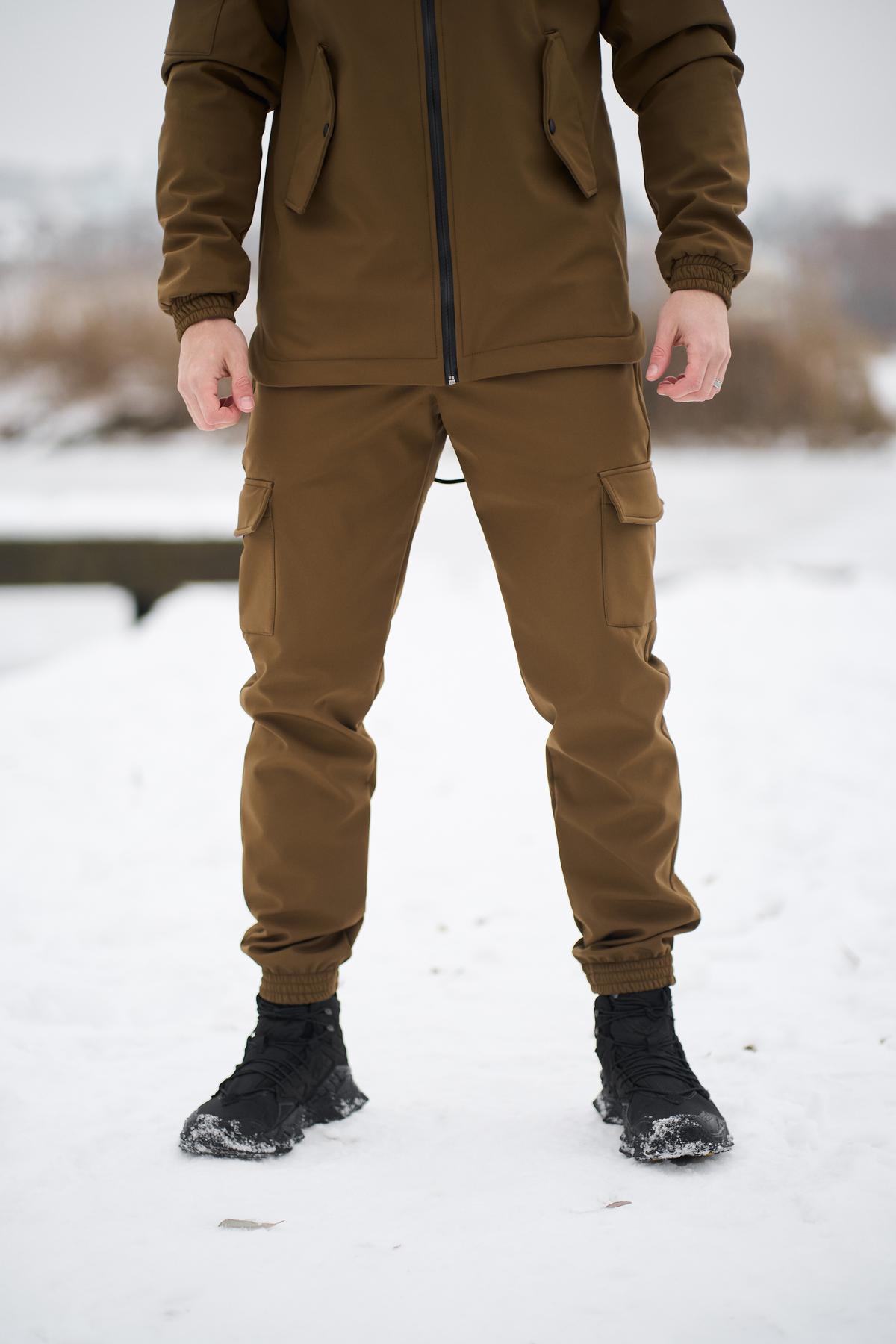 Мужские Утепленные Штаны Брюки Карго Койот Soft Shell на Флисе – Свободные с Манжетами и Накладными Карманами