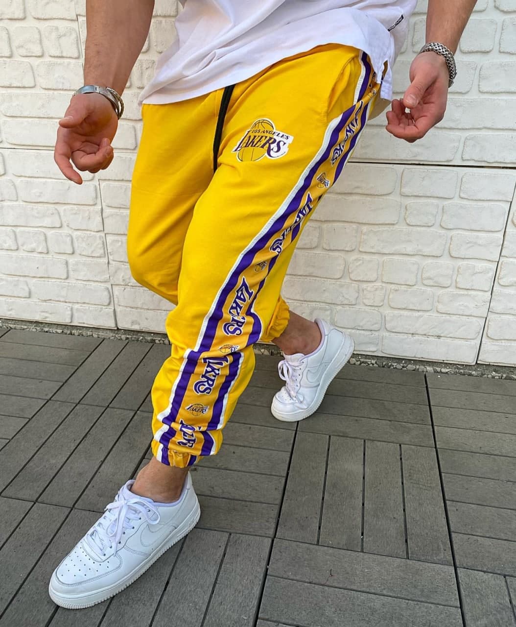 Мужские Желтые Спортивные Штаны с Лампасам- на Манжетах Свободного Кроя