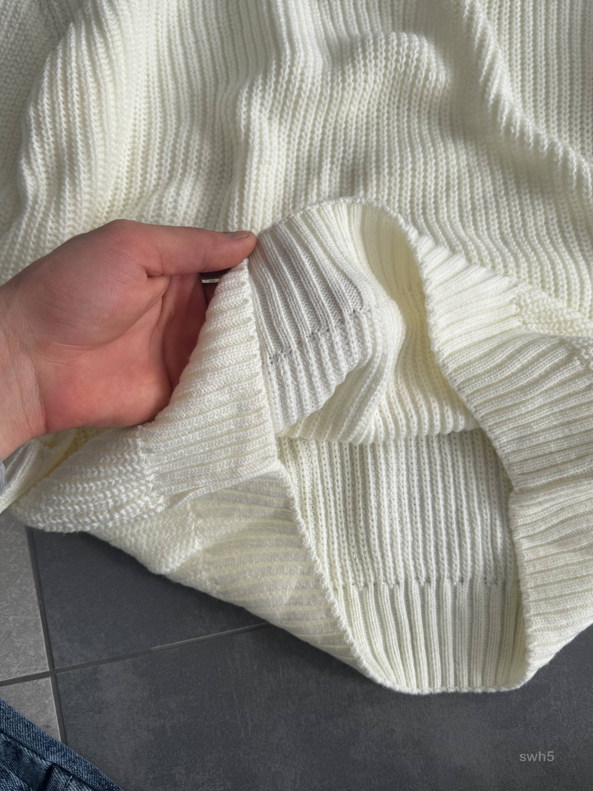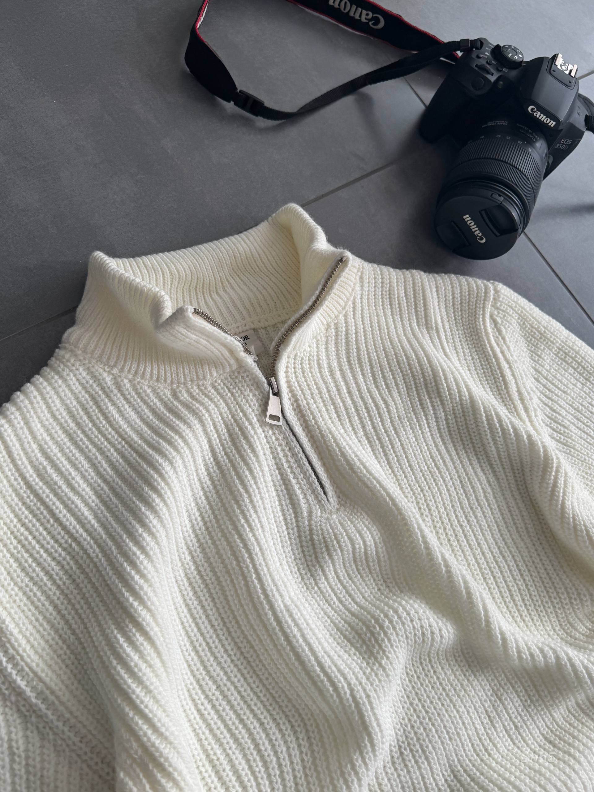 Мужской Базовый Молочный Свитер Зип – Вязаный с Высокой Горловиной на Замке