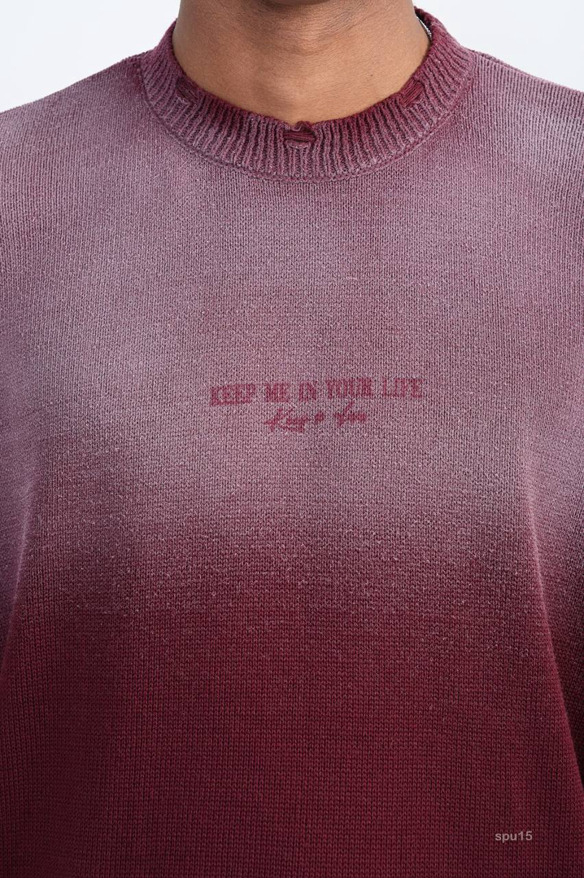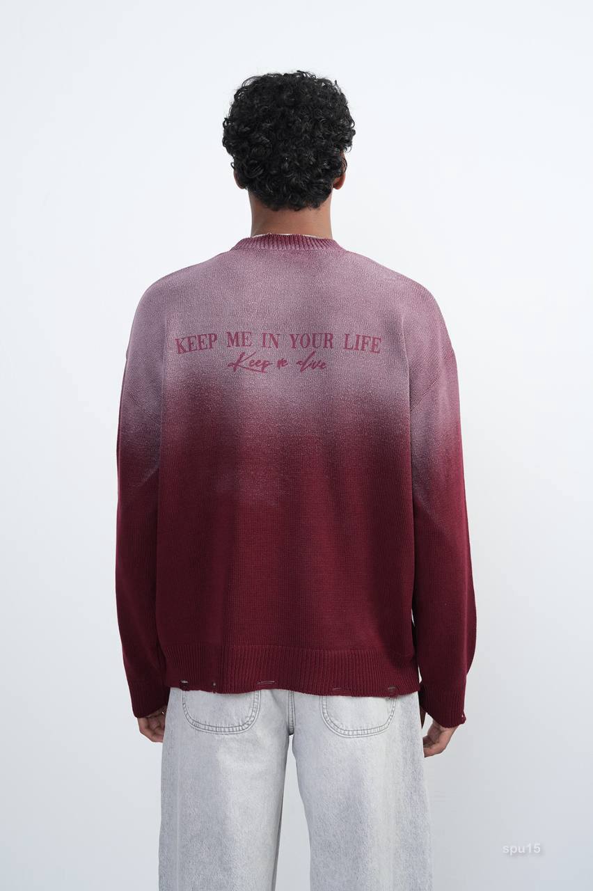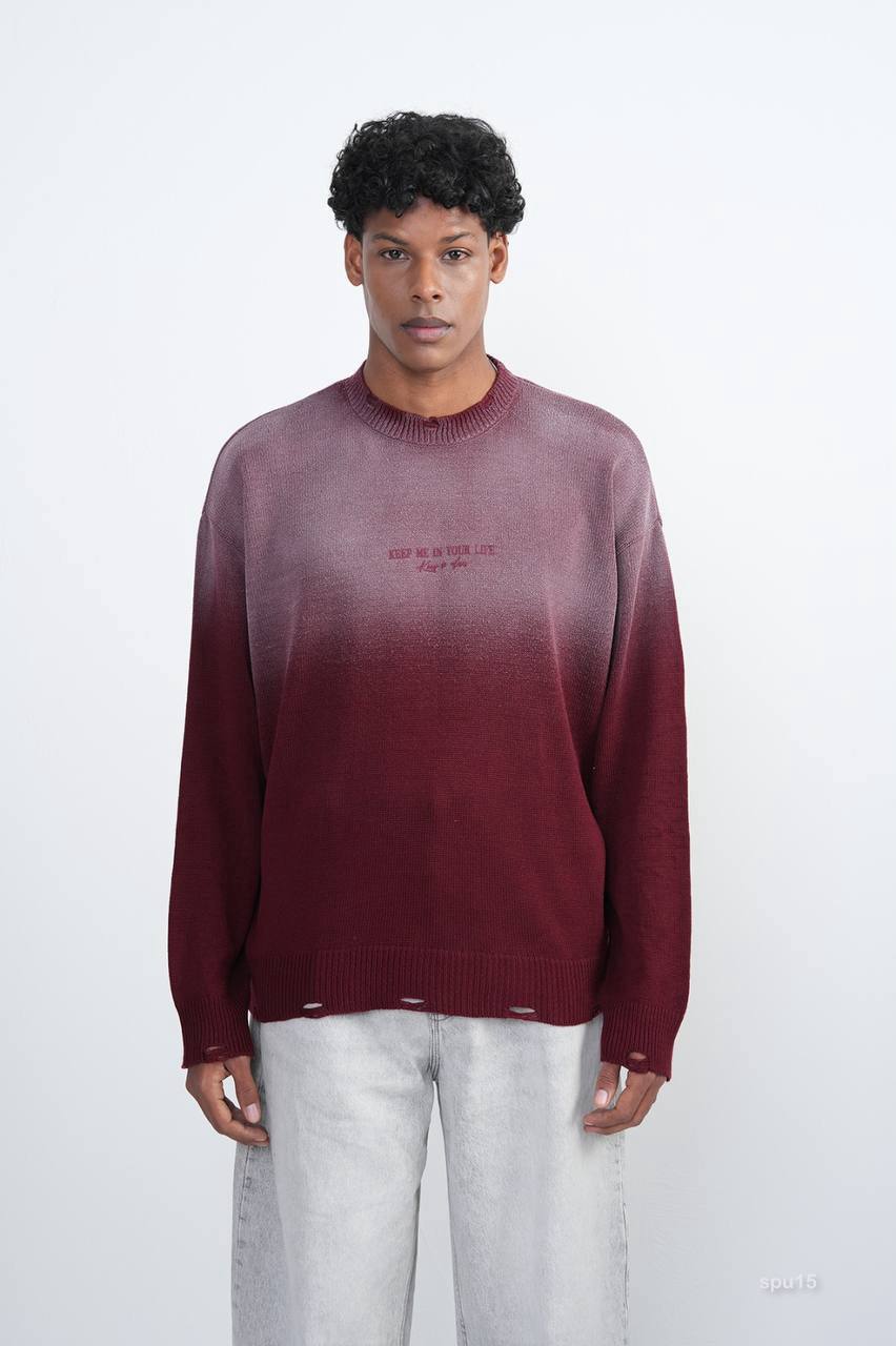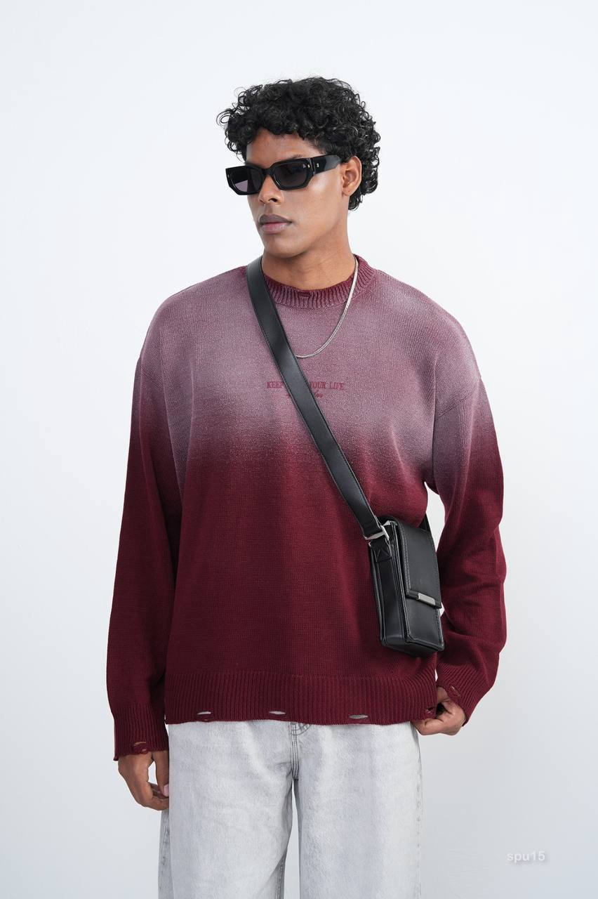 Мужской Бордовый Рваный Свитер Градиент Свободного Кроя