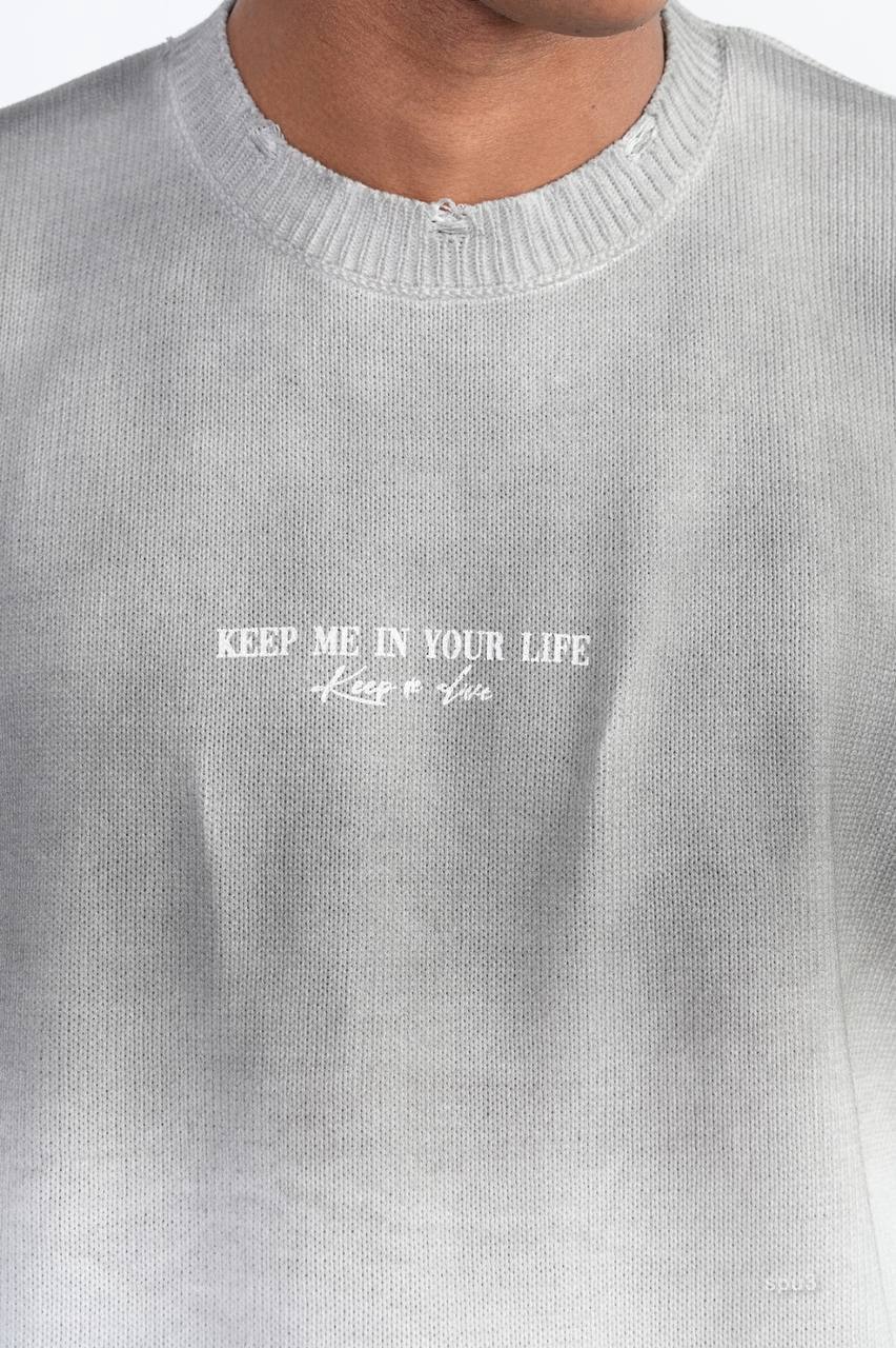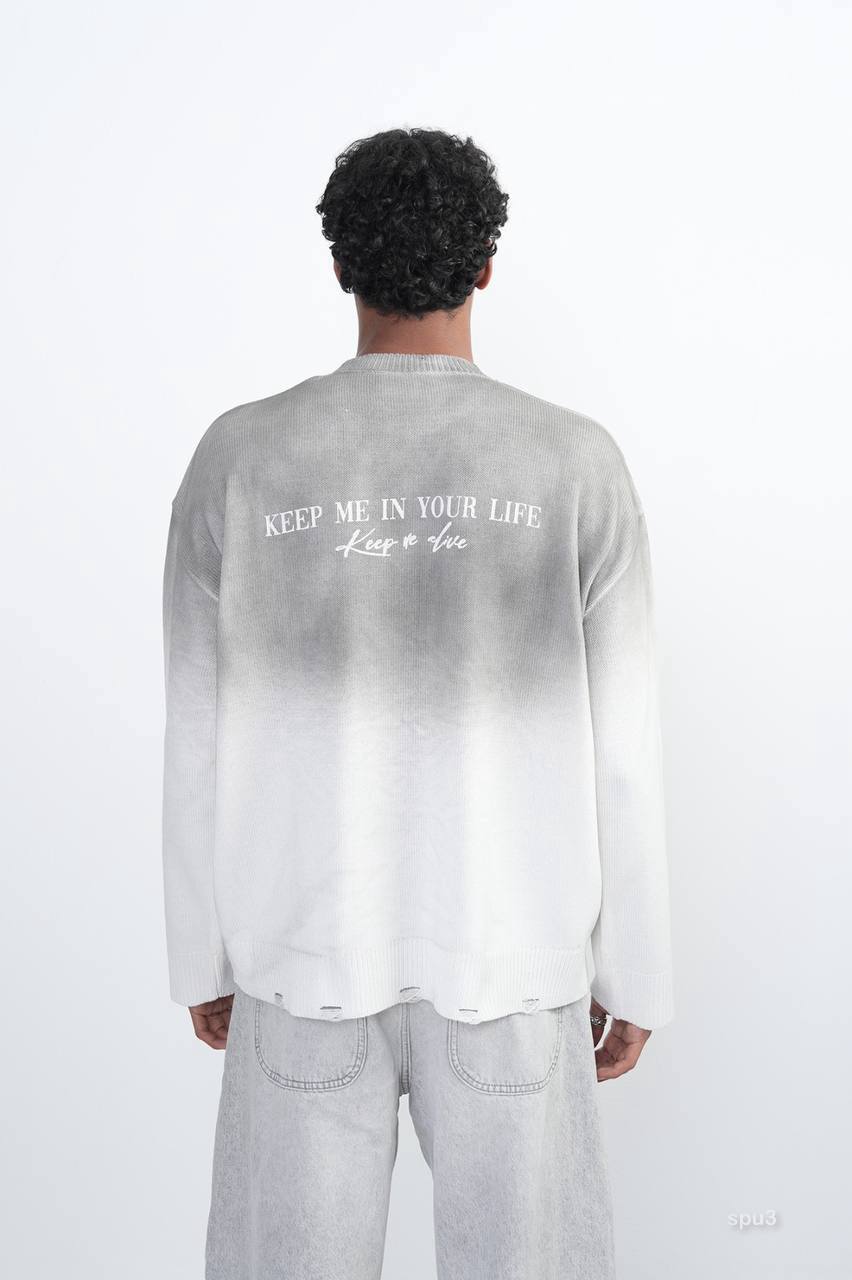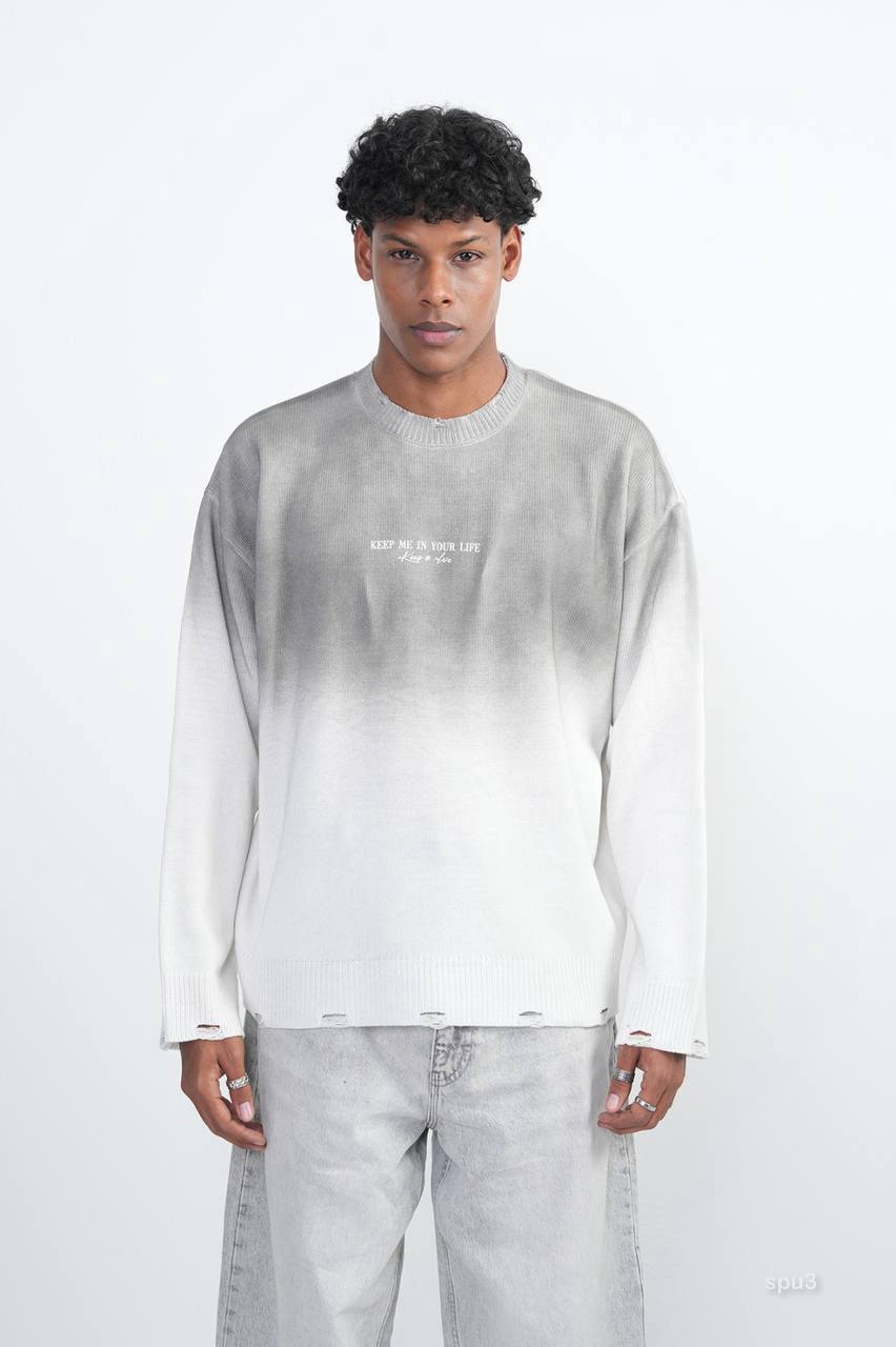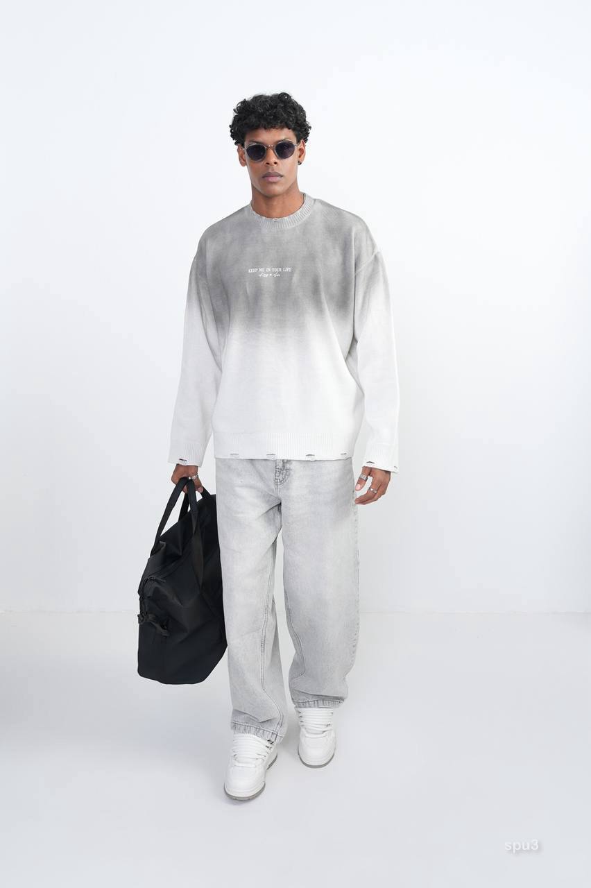 Мужской Серый Рваный Свитер Градиент Свободного Кроя