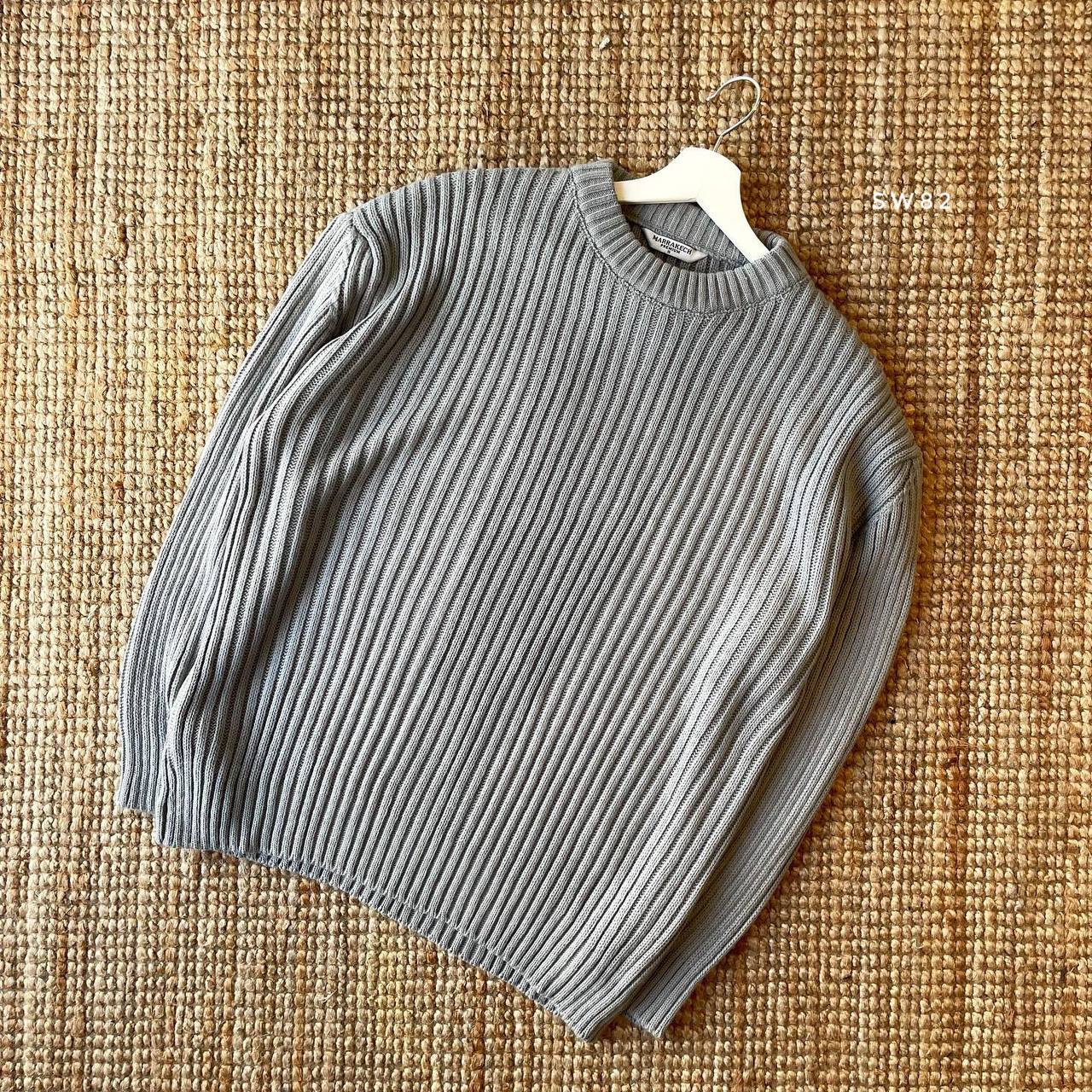 Мужской Шерстяной Теплый Серый Свитер с Круглым Вырезом в Рубчик